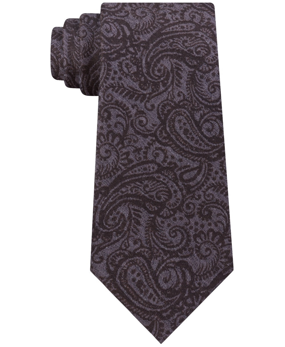 Gravata masculina Michael Kors com estampa Paisley e efeito relevo, marrom, tamanho regular