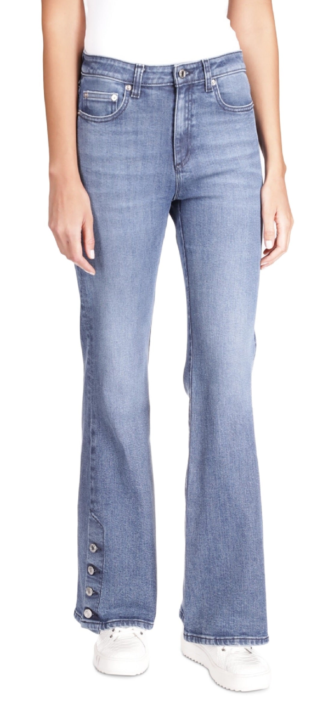 Punhos abotoados destacam estas calças jeans flare da Michael Kors