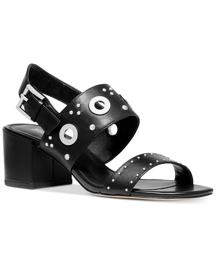 Com ilhós grandes e tachas minúsculas, as sandálias sociais Caldwell da MICHAEL Michael Kors adicionam um toque metálico a tudo, desde saias sob medida até jeans skinny. Salto 2-1/4 | Sandálias sociais tipo slingback com bico redondo e fecho de fivela ajustável | Detalhes de ilhós e tachas nas tiras | Cabedal em couro Vachetta; sola de borracha | Importado