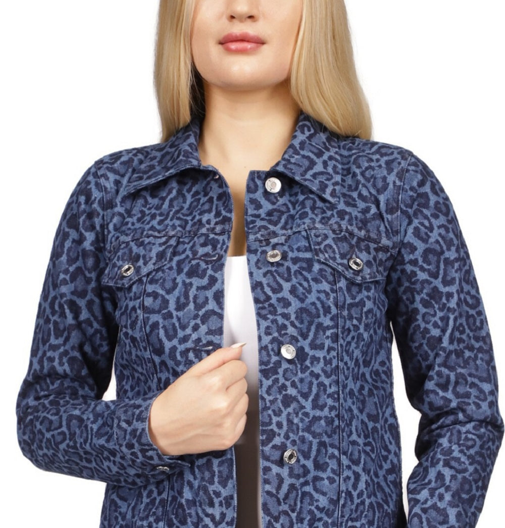 Dê um toque final chique com esta jaqueta jeans pequena da Michael Kors. | Comprimento aproximado; 22 | Projetada para se ajustar e valorizar pessoas de 1,62 m ou menos | Gola dobrável; fechos frontais com botões | Bolsos com aba no peito | Mangas compridas com punhos abotoados | Sem forro