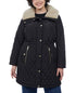 Casaco acolchoado com capuz e gola de pele sintética feminino Michael Kors, preto, tamanho 1X