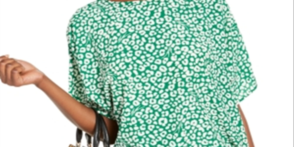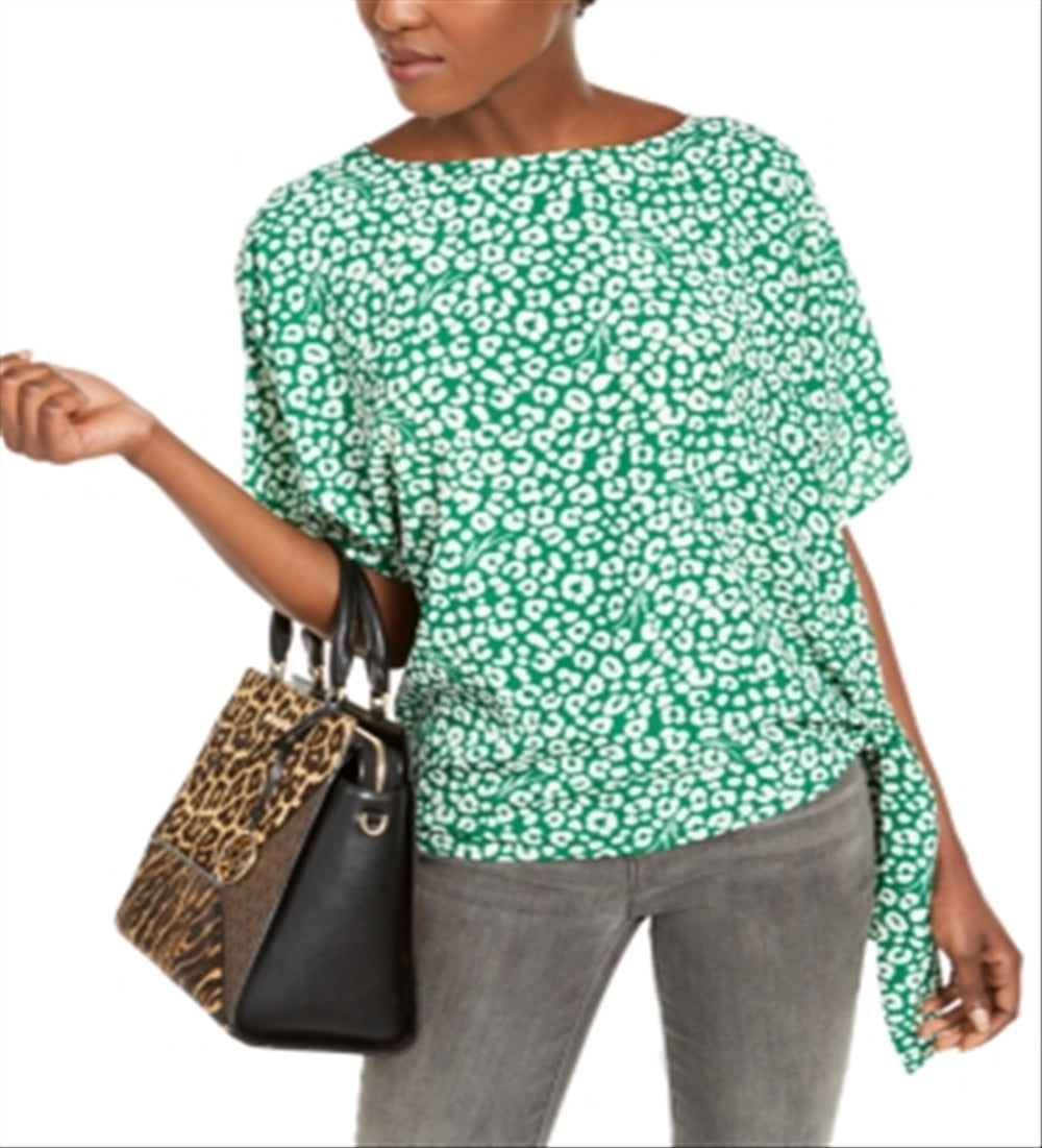 Blusa feminina Michael Kors com estampa de leopardo e amarração lateral, verde, tamanho 2XL