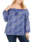 Blusa feminina Michael Kors Plus com estampa e babados, ombro caído, azul, tamanho 2X