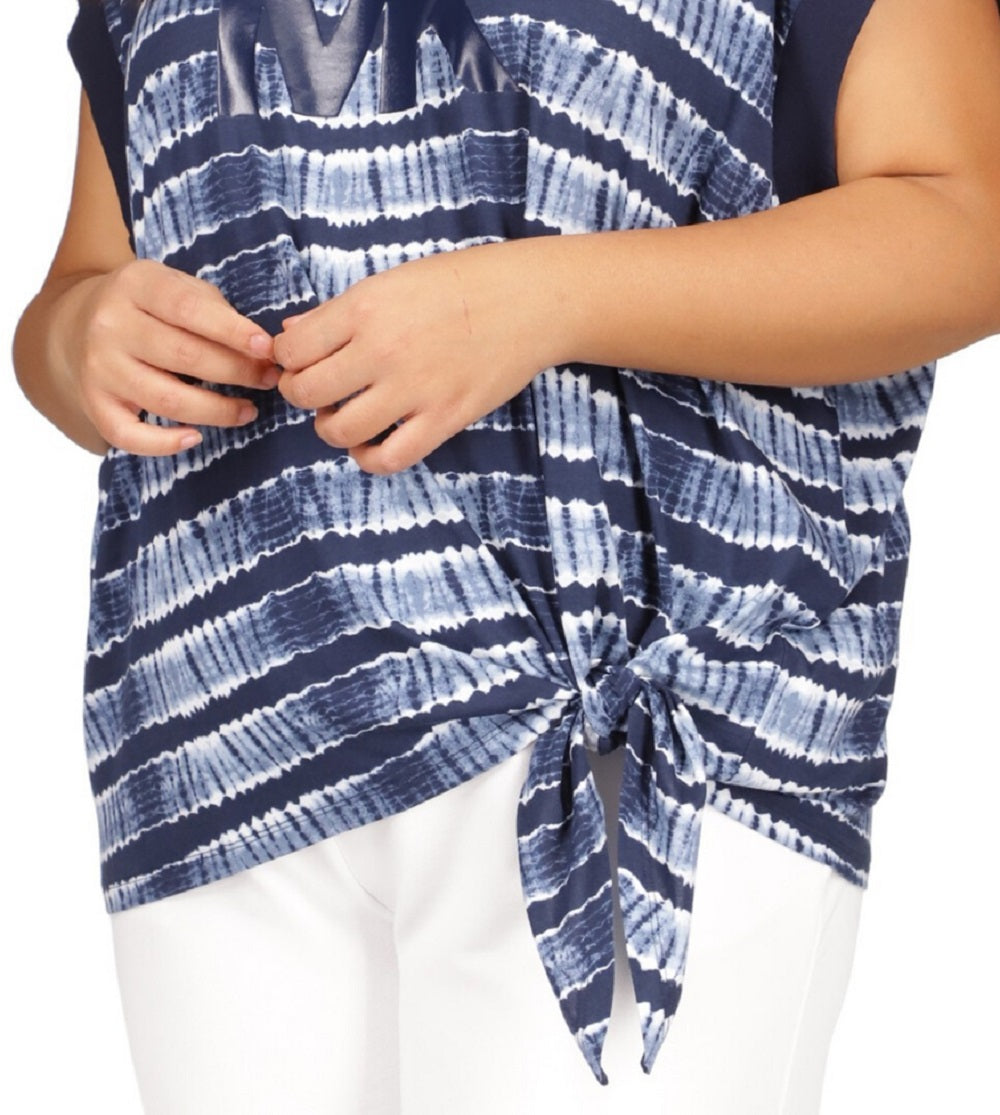 Michael Kors faz maravilhas no seu guarda-roupa com esta camiseta plus size | projetada com bainha de amarração que drapeia na lateral. | Aproximadamente 26-1/2 de comprimento | Gola redonda | Gráfico MK na frente; detalhe de bainha de amarração | Algodão/modal/elastano | Lavável à máquina