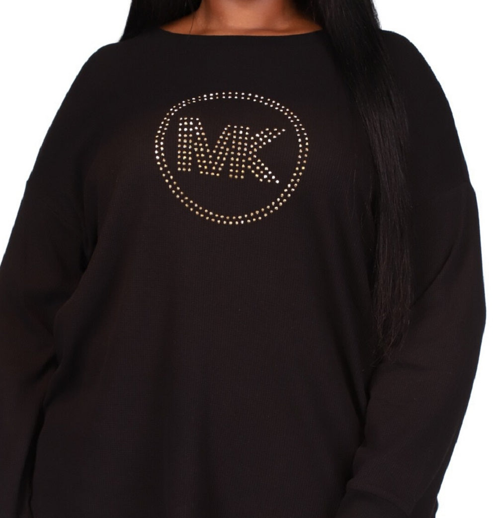Michael Kors brilha com uma camiseta plus size de manga comprida em malha waffle com logotipo de strass