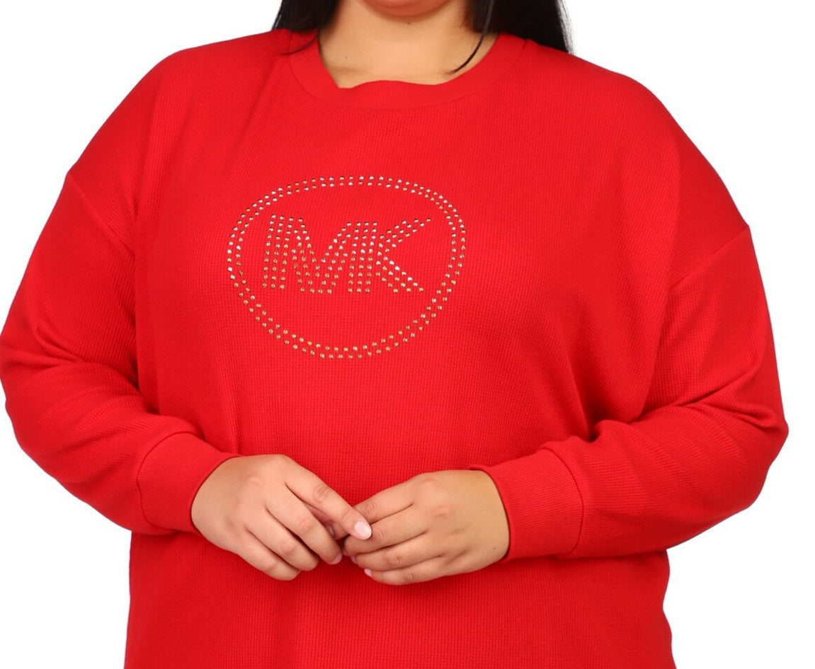 Michael Kors brilha com uma camiseta plus size de manga comprida em malha waffle com logotipo de strass