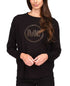 Blusa de malha waffle com logo de strass feminina Michael Kors, preta, tamanho grande