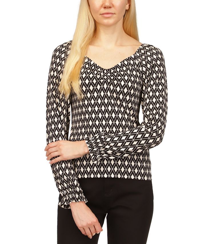 Franzido sutil no peito e uma estampa moderna completa elevam este top simples da MICHAEL Michael Kors a um favorito do guarda-roupa. | Importado | Franzido no peito; mangas elásticas | Decote em V | | Tamanho e ajuste |