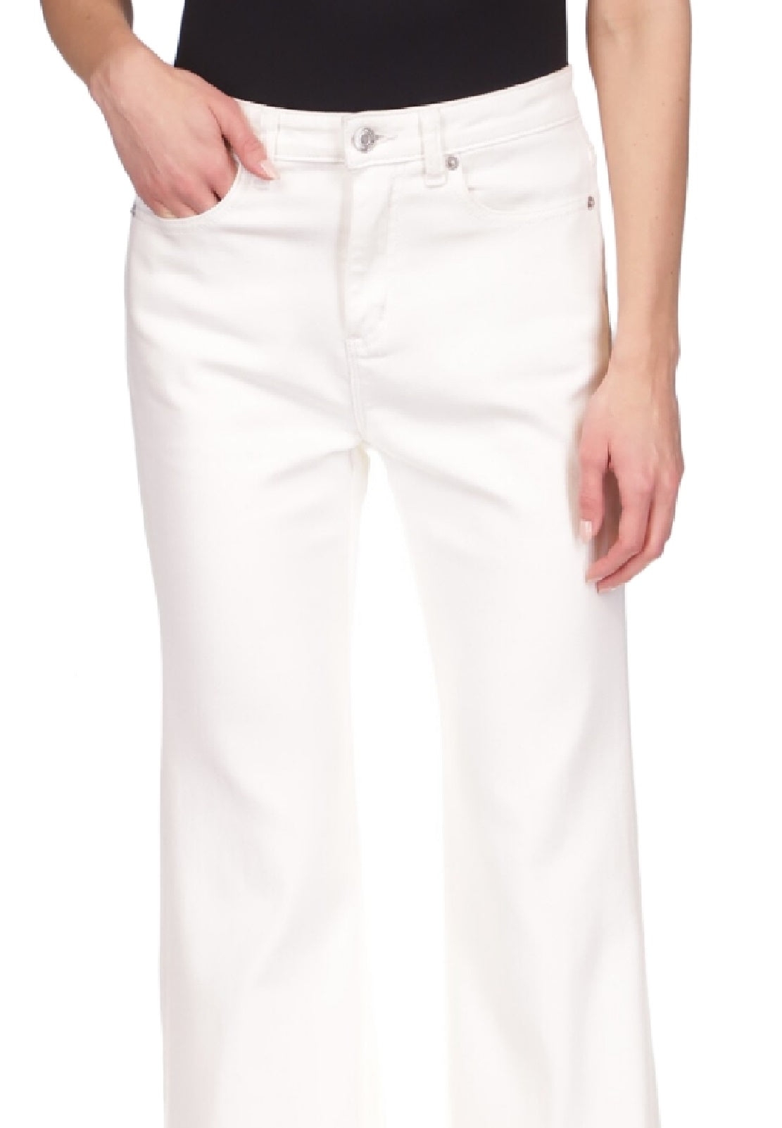 Calça jeans feminina Michael Kors Selma Shank com bainha abotoada e perna larga, branca, tamanho 6