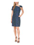 Michael Kors Pulôver Feminino Sem Forro Detalhe em O-ring Estampado Manga Curta Decote Assimétrico Vestido Curto de Festa Azul Tamanho P