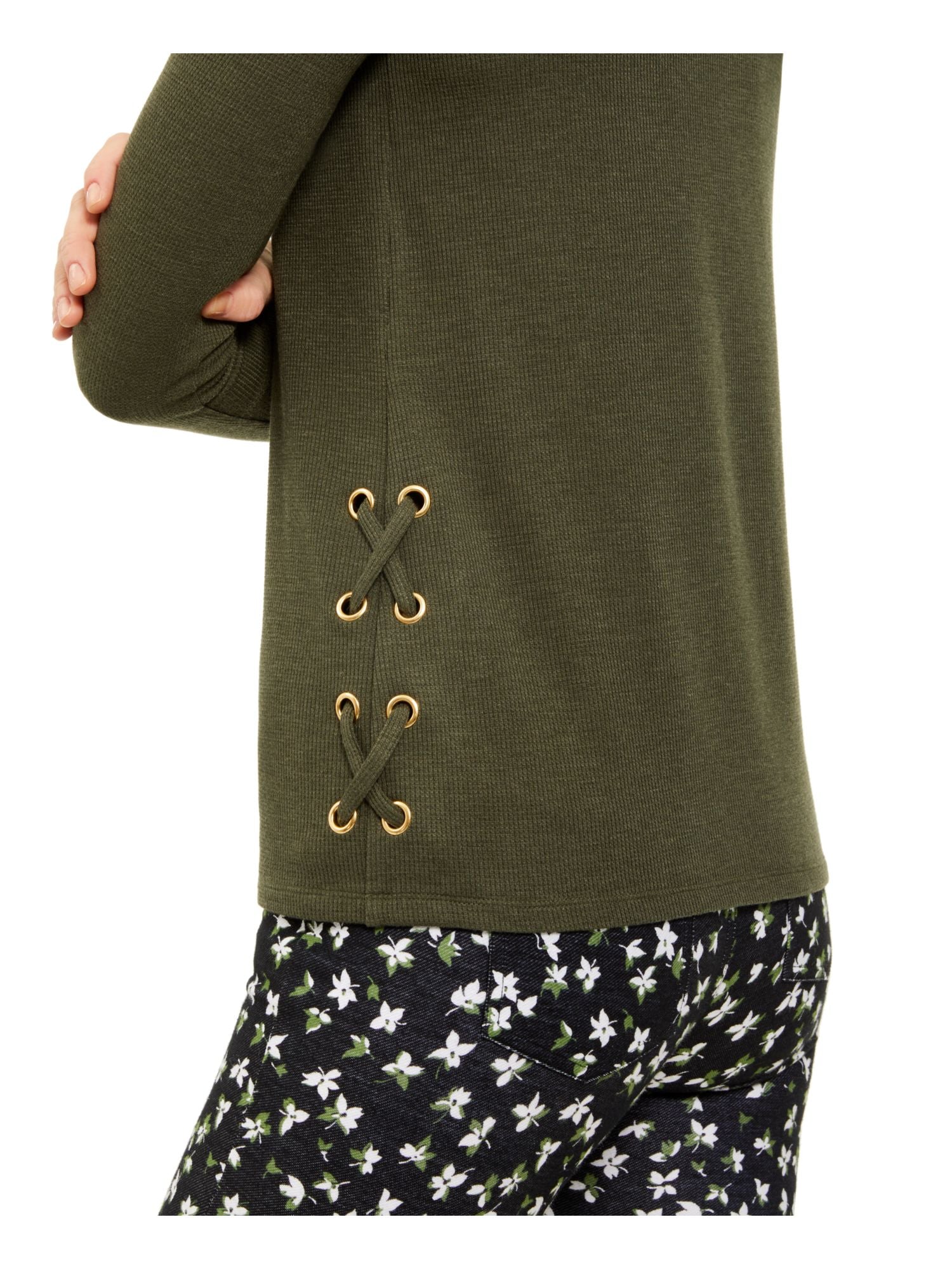 Blusa feminina de malha waffle Michael Kors, verde, tamanho médio