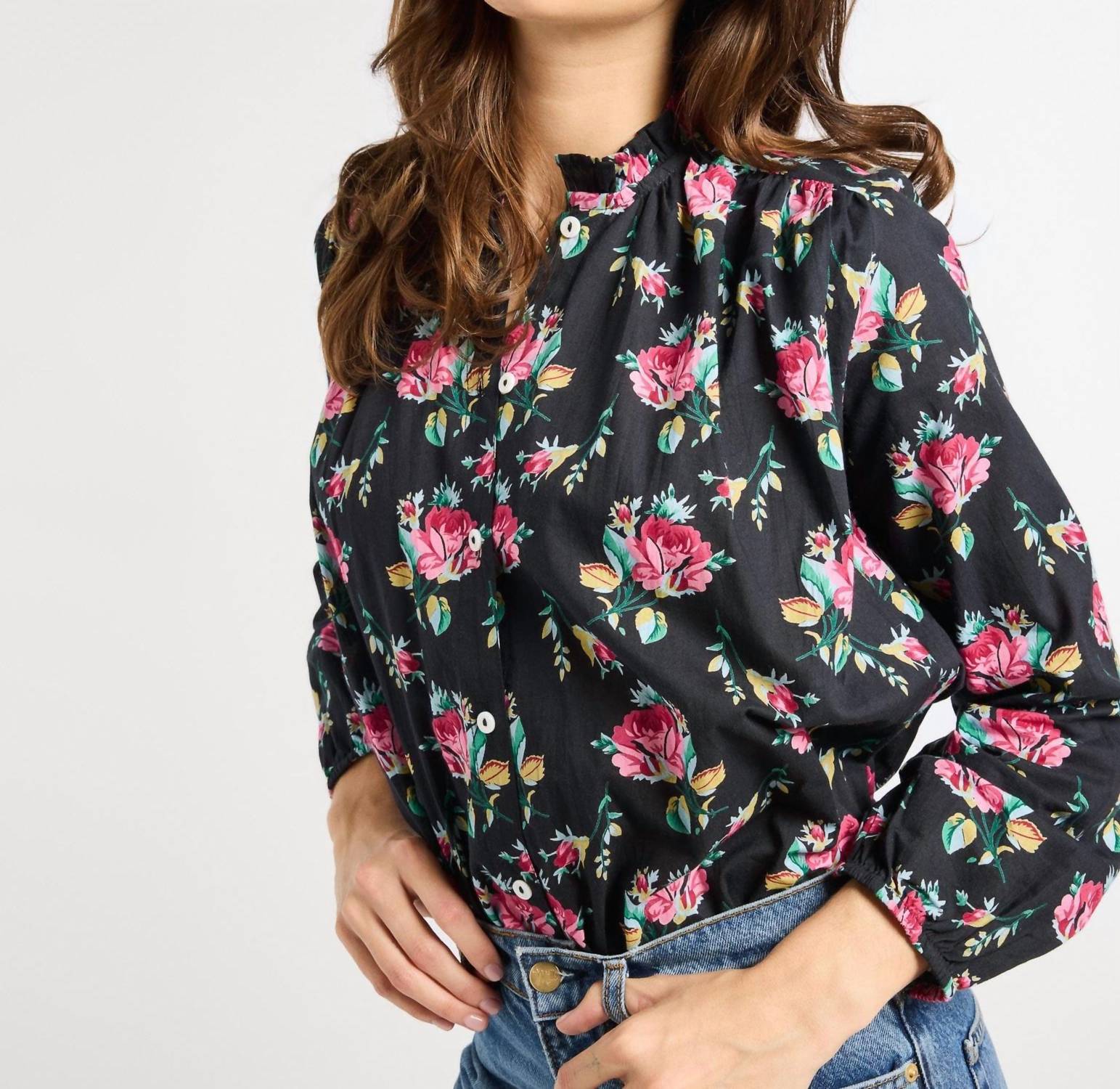 Conheça o Top Francesca da MILLE, uma versão refinada da adorada blusa Florian em um delicado tom corsage. Confeccionada em 100% algodão, esta blusa estampada apresenta manga três quartos e um charmoso decote com babados. Seu design abotoado e o corpo volumoso a tornam perfeita para ser usada por baixo da calça e com um estilo versátil. Sem bolsos, esta blusa mantém uma silhueta elegante.
