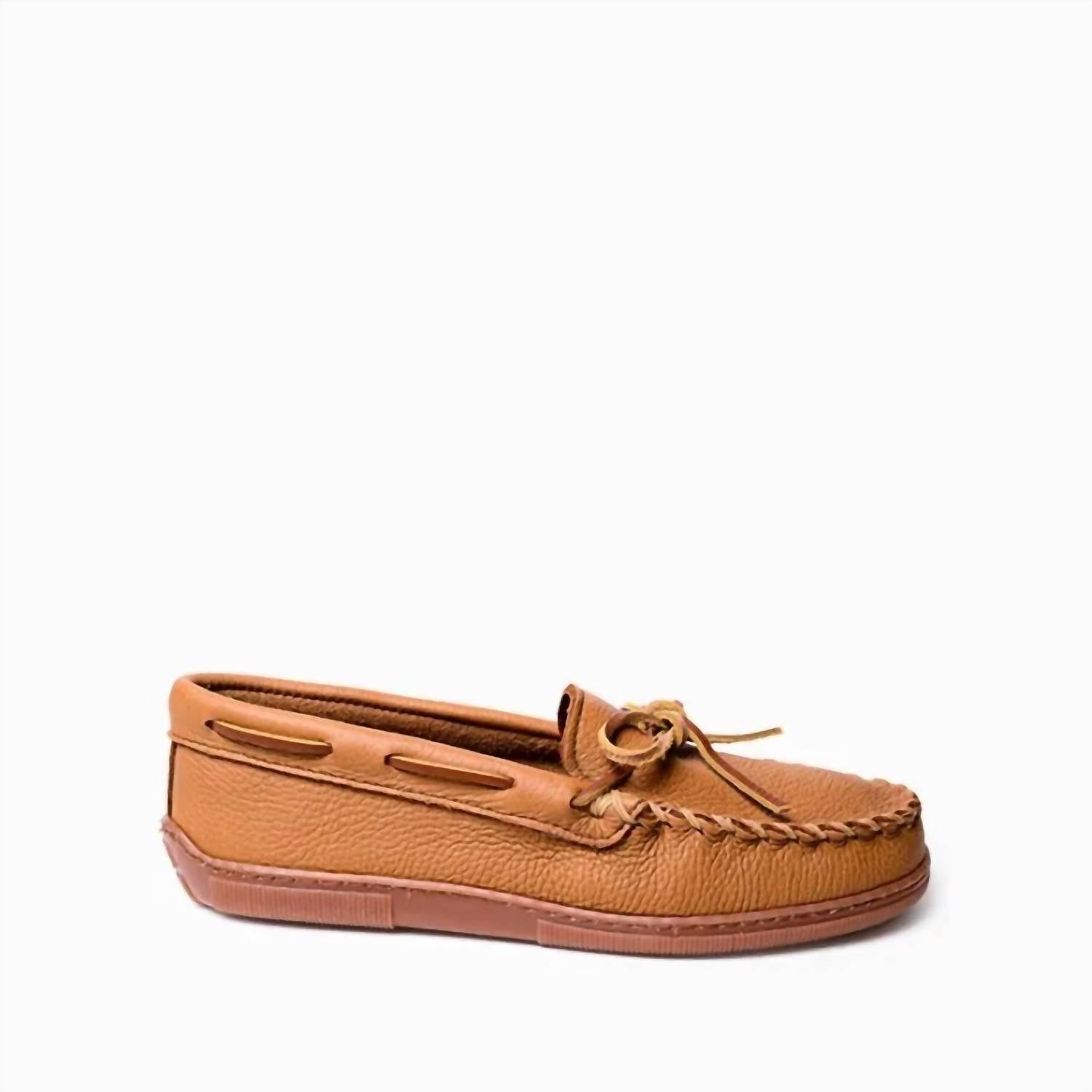 Step into timeless comfort with the Men's Moosehide Classic Loafer by MINNETONKA. Crafted from natural leather, this moccasin features a classic round toe design and a flat heel, perfect for a relaxed summer vacation. Its slip-on style offers effortless wear, embodying the essence of vintage charm. Ideal for men seeking both style and ease, this moccasin complements casual attire effortlessly.