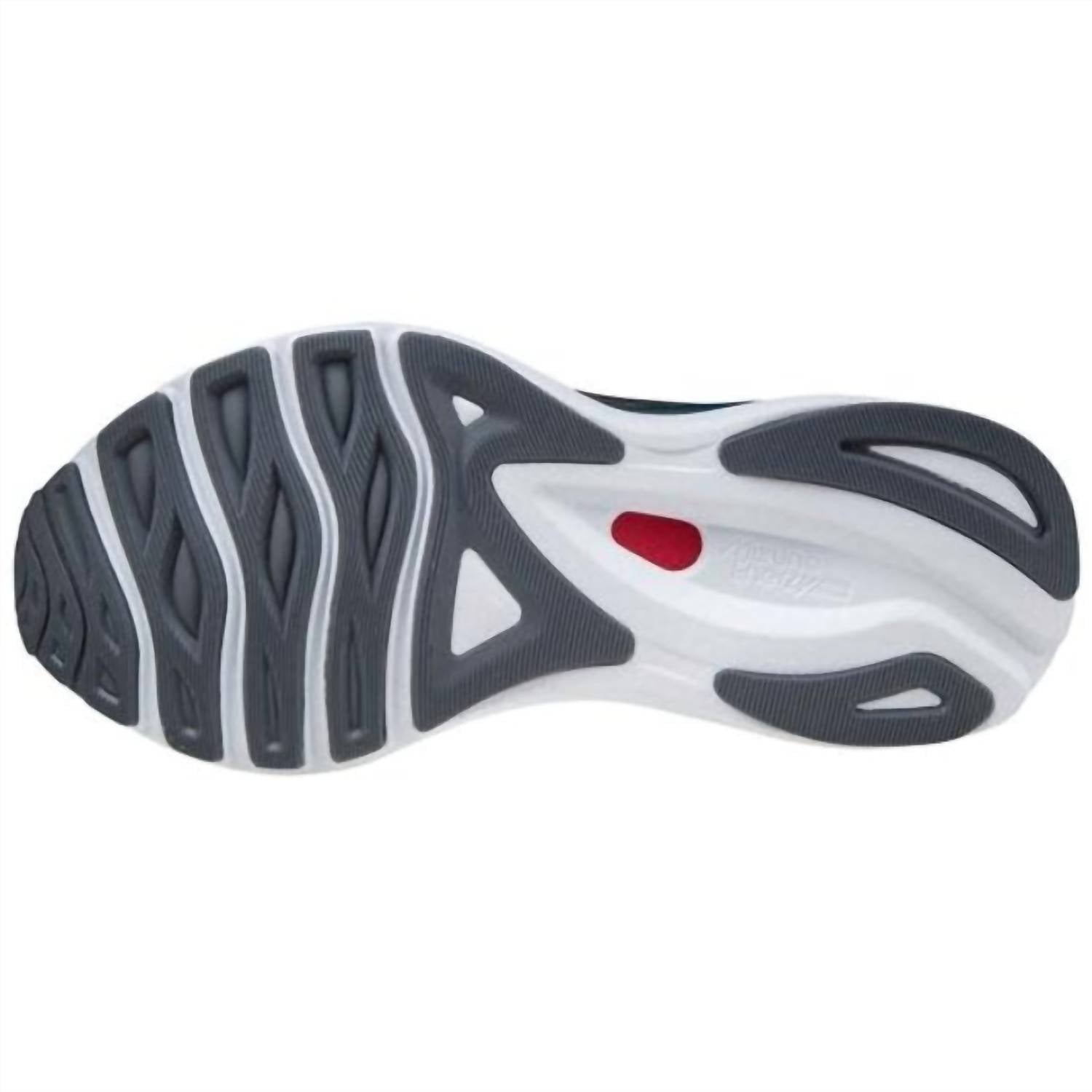 Treine com estilo com estes adoráveis tênis esportivos. O Wave Sky 5 oferece um ajuste mais leve e aprimorado graças ao cabedal em tecido, além de maior retorno de energia do MIZUNO ENERZY CORE: nosso material mais responsivo até o momento. Feito com materiais reciclados e pensado para corridas mais prazerosas. Drop: 8 mm. Peso: 295 g (tamanho 8).