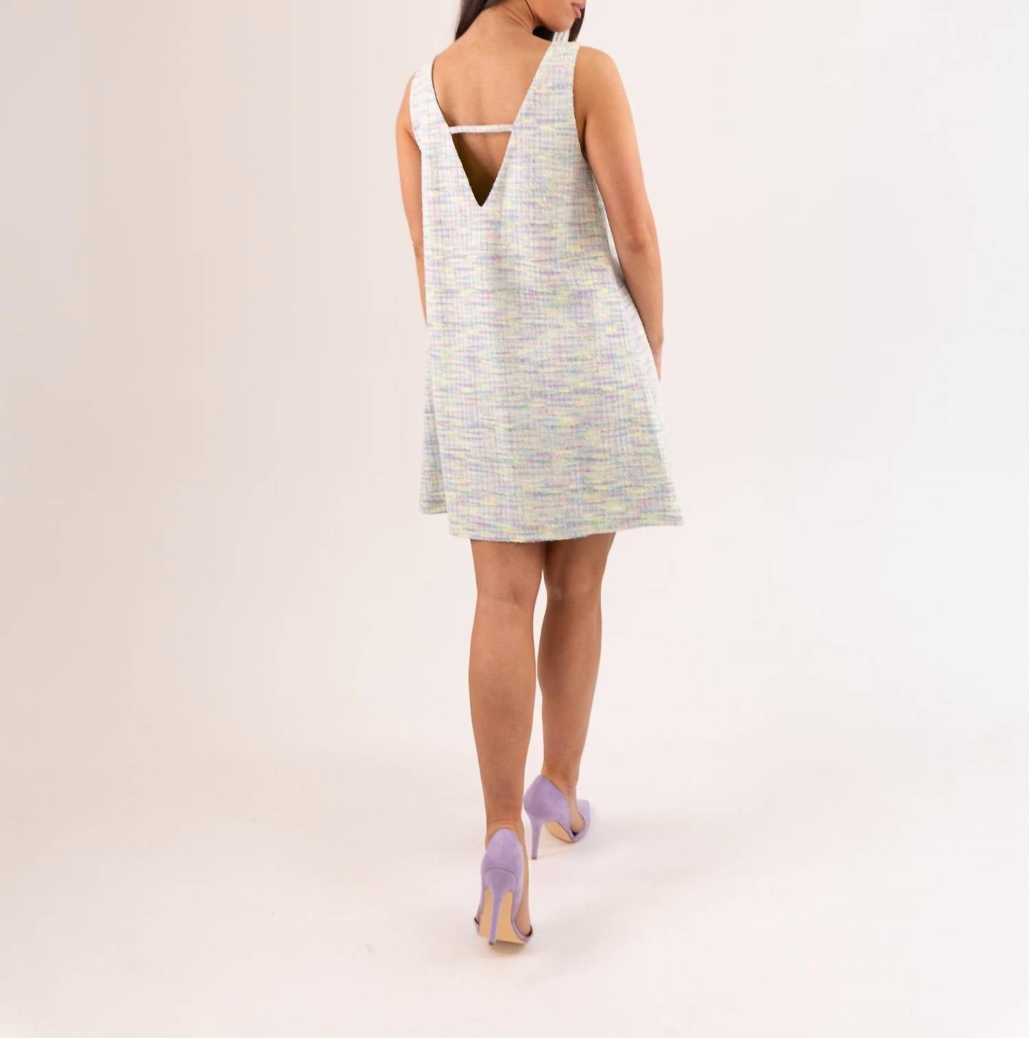 O tipo de vestido fácil e elegante que você vai usar durante toda a estação. Abrace a elegância com o Vestido Prismatic Tweed da MOLLY BRACKEN, criado para chamar a atenção em qualquer evento. Este sofisticado minivestido apresenta decote em V e alças largas, oferecendo um toque elegante e feminino. Composição: 70% poliéster, 25% algodão, 5% elastano. Fecho: Puxe para vestir. Cuidados: Lavar à máquina a 30°, passar a ferro frio do avesso, não usar alvejante, secar na máquina ou lavar a seco. O forro neon vibrante e o efeito tweed azul mesclado capturam a tendência Y2K, tornando-o ideal para um jantar ou comemoração de Réveillon.