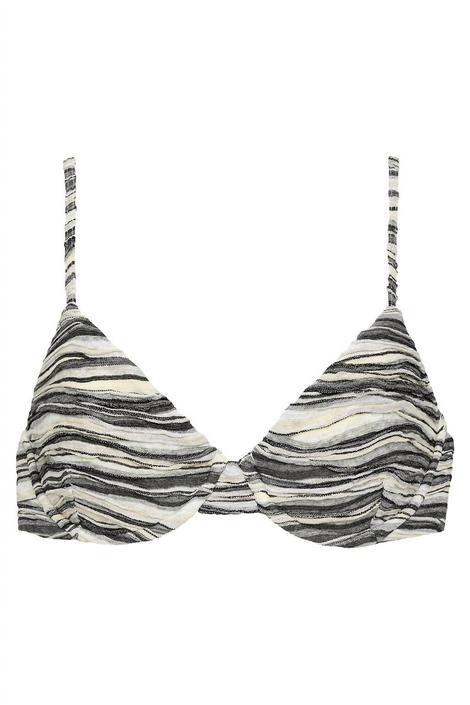 Ideal for relaxed poolside moments, this adorable swimsuit effortlessly transitions into the perfect sunset dinner outfit when paired with a flowing skirt. Elevate your beachwear with the Dainty Bikini Top by Montce, a stylish essential for sunny days. This swim top features a flattering scoop neckline and a minimalist bralette silhouette with an underwire for medium to high support, paired with adjustable shoulder straps and a back hook closure. Crafted from 85% Viscose and 15% Nylon, the fabric is imported from Spain and is OEKO-TEX certified for quality. Care is simple: hand wash as directed.