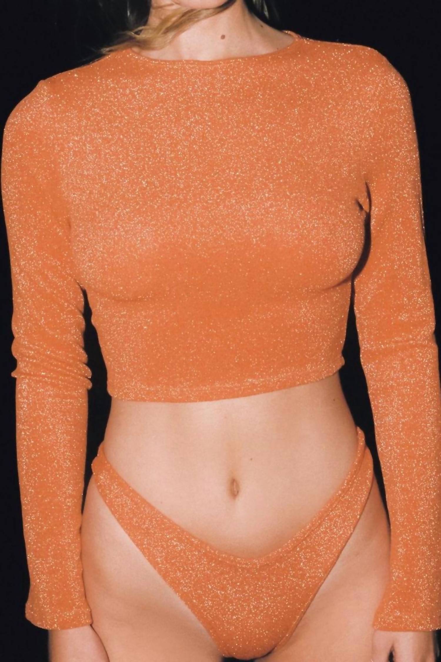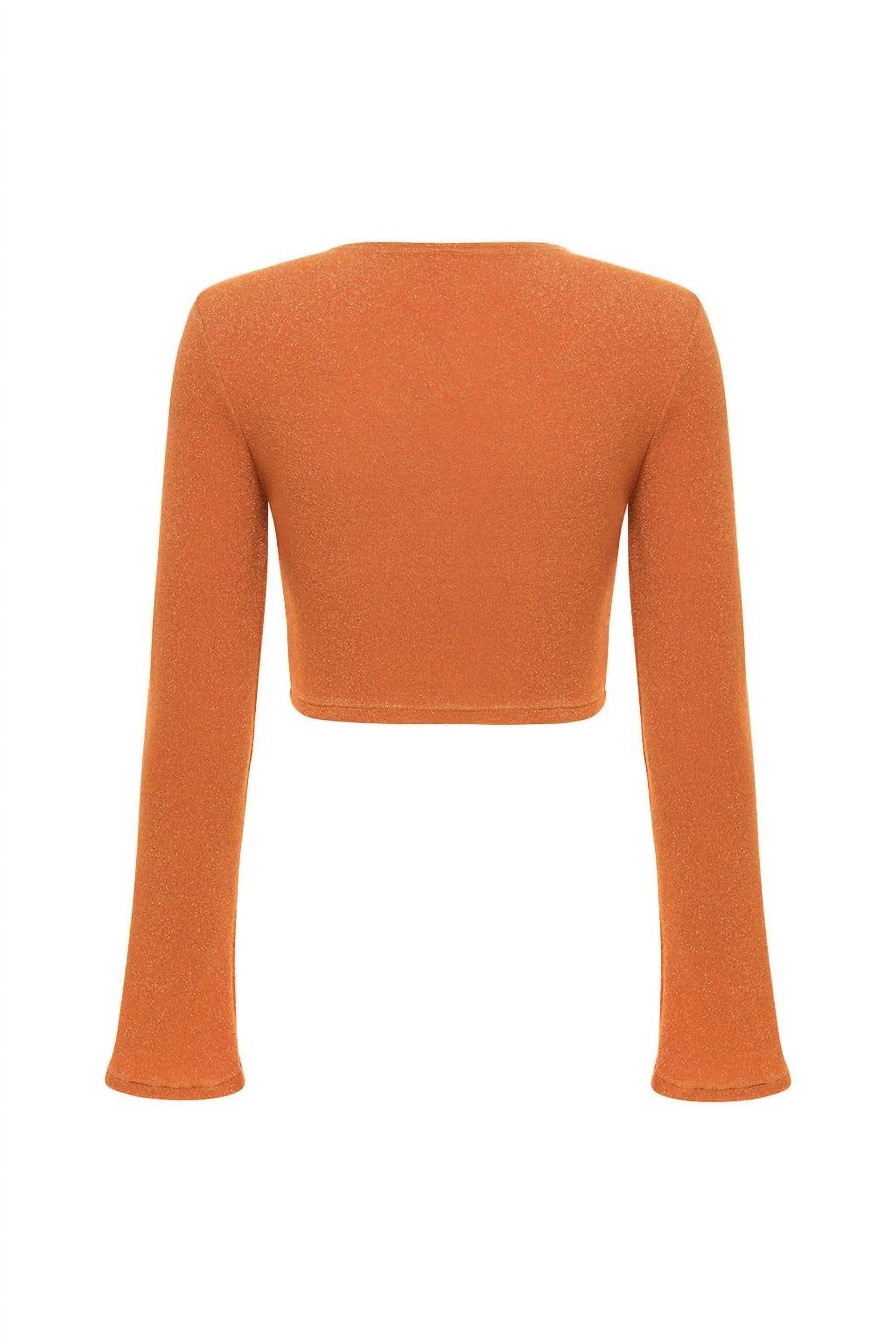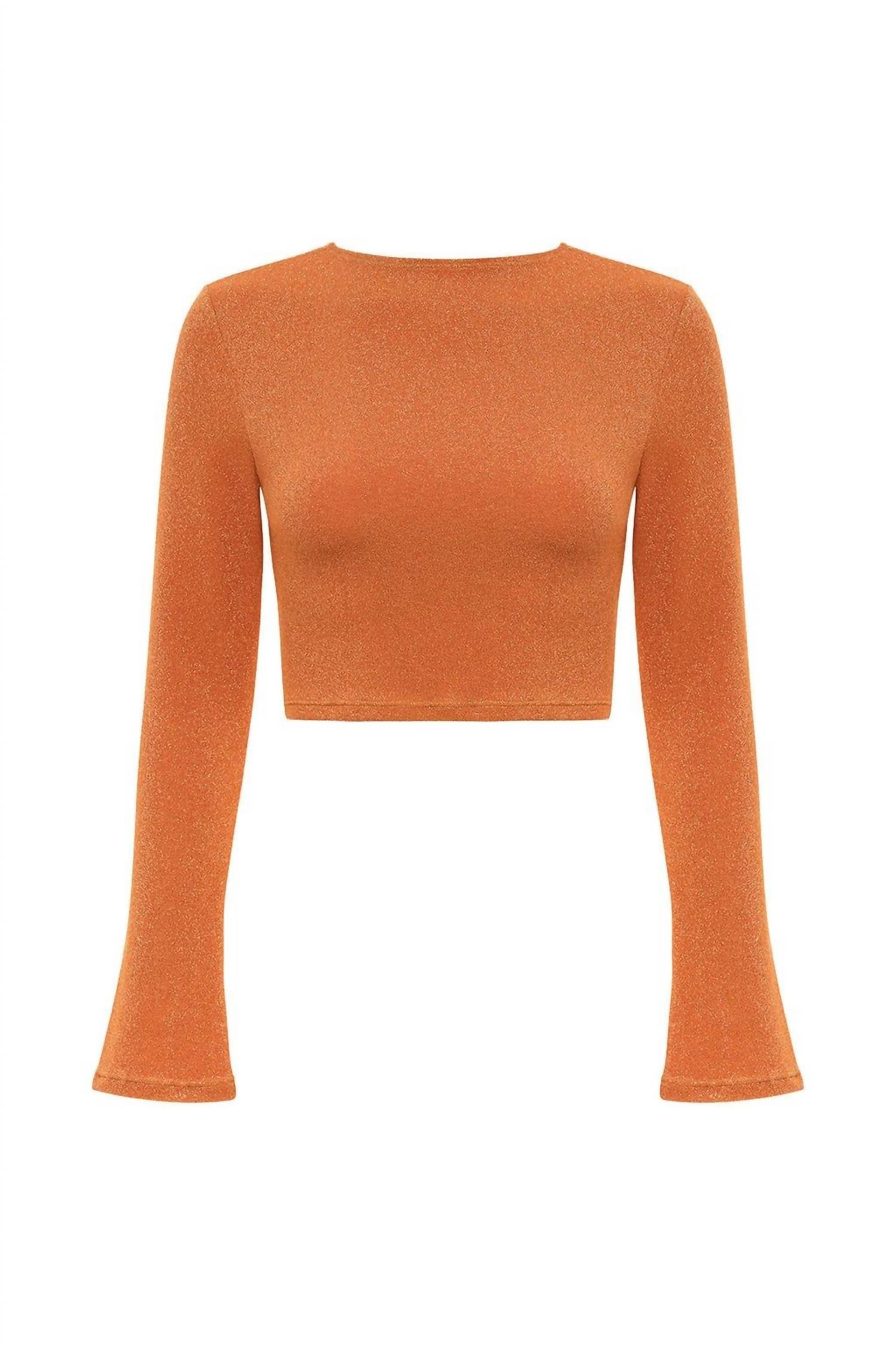 Elevate your summer wardrobe with the Montce Flair Solidad Crop Top in Terra Sparkle. Showcasing elegant flared long sleeves and a flattering crew neckline, this textured crop top offers a slim fit for a chic, modern look. Made for ease with a pull-on style, it pairs effortlessly with your favorite high-waisted pieces. Care instructions recommend a gentle hand wash to preserve the delicate fabric.