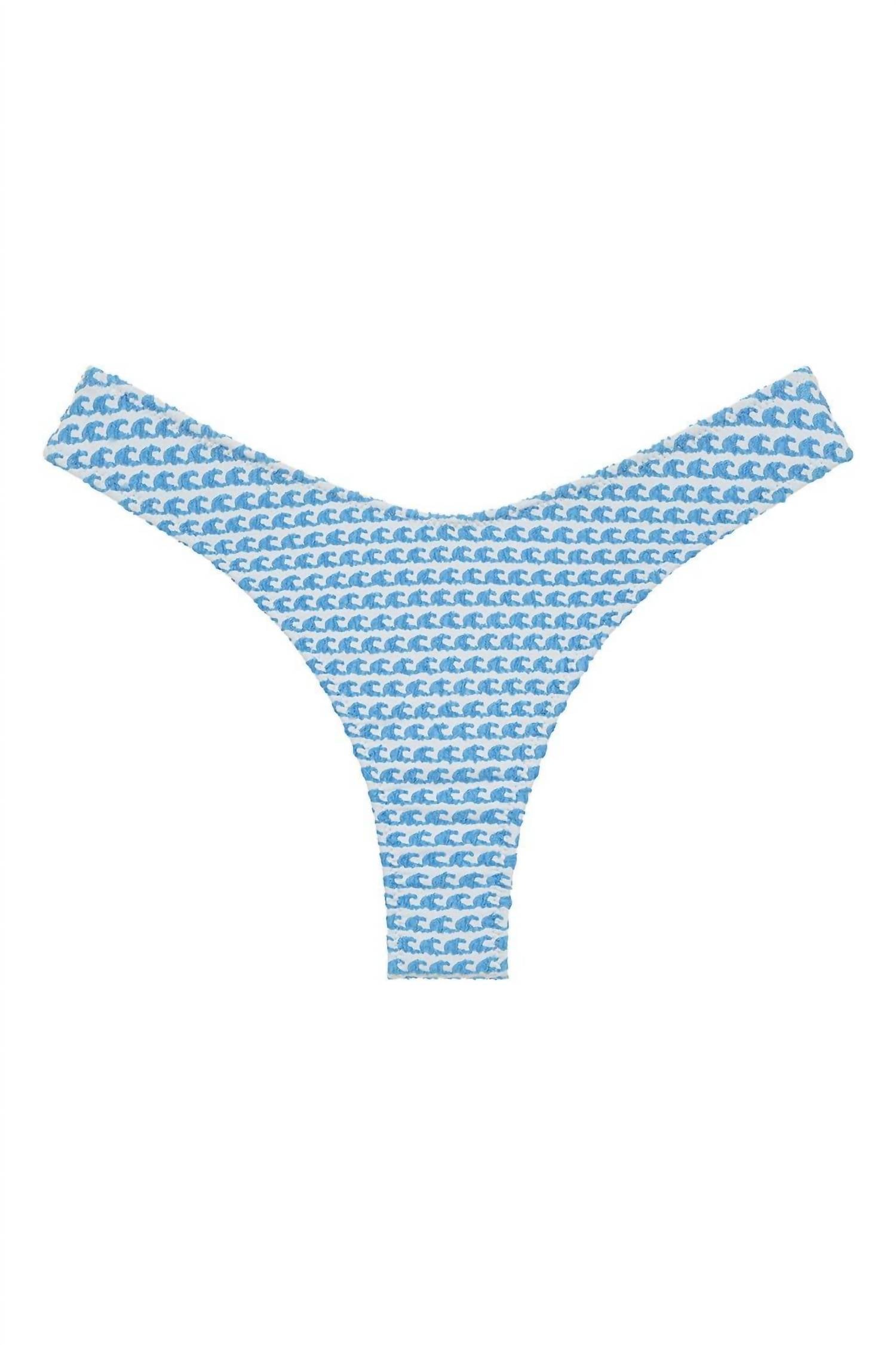 Ideal for relaxed poolside moments, this adorable swimsuit effortlessly transitions into the perfect sunset dinner outfit when paired with a flowing skirt. Introducing the Lulu Zig-zag Stitch Bikini Bottom by Montce, a perfect blend of retro style and modern functionality. This women's swim bottom offers moderate coverage with a medium low rise that elongates the leg and features zig-zag stitching for a ruched effect at the back. Crafted from 100% recycled plastic bottles, the Wave Repeat pattern is designed for minimal tan lines and is universally flattering for all figures. Care: Hand wash and avoid rough surfaces and harsh chemicals to preserve its delicate nature.