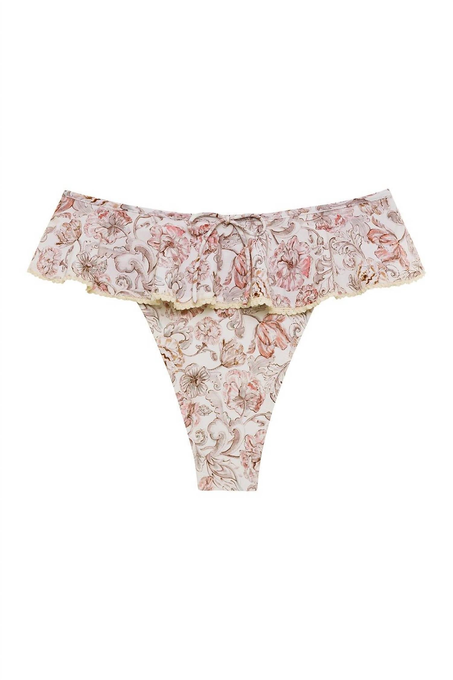 Unveil your beach-ready look with the Tamarindo Ruffle Bikini Bottom by Montce in a captivating Venecia Floral pattern. This swim bottom offers a stylish fusion of medium rise and a high-leg French cut, accentuating your silhouette with a ruched back design for enhanced curves and moderate cheeky coverage. Crafted from an 80% Nylon, 20% Spandex blend, it flaunts a vintage floral print while being OEKO-TEX certified and lovingly imported from Italy. For care, gently hand wash to maintain its vibrant appeal and timeless boho chic charm.