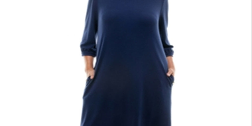MONTEAU|Estilo; Vestido|Ocasião; Casual|Tamanho; 2X|Material; Poliéster|Cor; Azul-marinho|Decote canoa