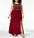 Vestido de noite feminino Morgan & Co sem mangas com contas, vinho, tamanho 18W