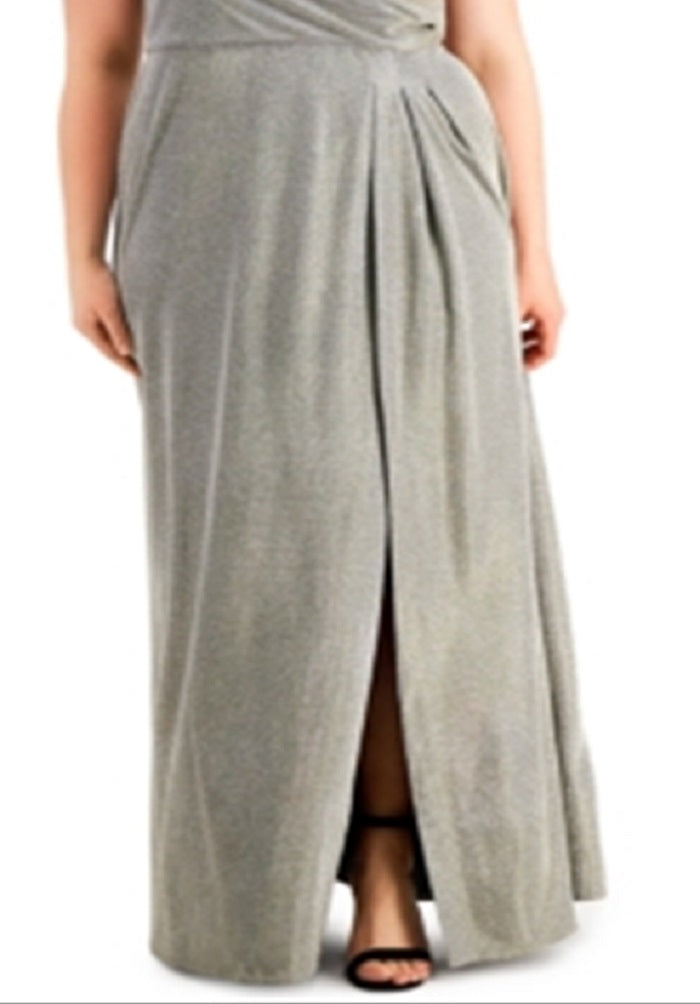 Vestido metálico com sobrepeliz plus size da Morgan & Company para mulheres, amarelo, tamanho 22W