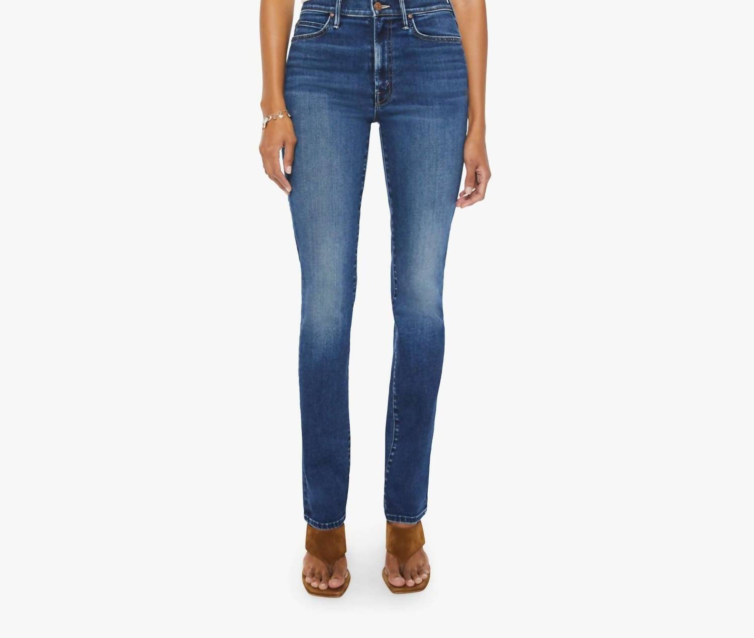 These must-have jeans are fit to perfection. Introducing the High Waisted Rascal Sneak Jeans by Mother, designed in Uncharted Waters, a classic dark blue with whiskering. With a high-rise fit featuring a 10.5" rise and 32" inseam, these jeans provide a flattering silhouette, complemented by a 13.5" leg opening. Crafted in Los Angeles from denim with more stretch than rigid, they ensure comfort and style. Closure: Button closure. Care instructions: Machine wash and tumble dry.