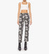 Introducing the Mid Rise Rambler Zip Ankle Jeans by Mother, a statement piece in a striking Curlycue Black and Cream graphic print. These women's mid-rise jeans boast a wide straight leg with a clean ankle-length inseam and come with pockets for added functionality. Crafted from a semi-rigid cotton blend(60% Cotton, 37% Lyocell, 3% Elastane), they feature a button closure and are made in Los Angeles with fine imported materials. Care for these vacation-ready jeans is simple: machine wash and tumble dry.