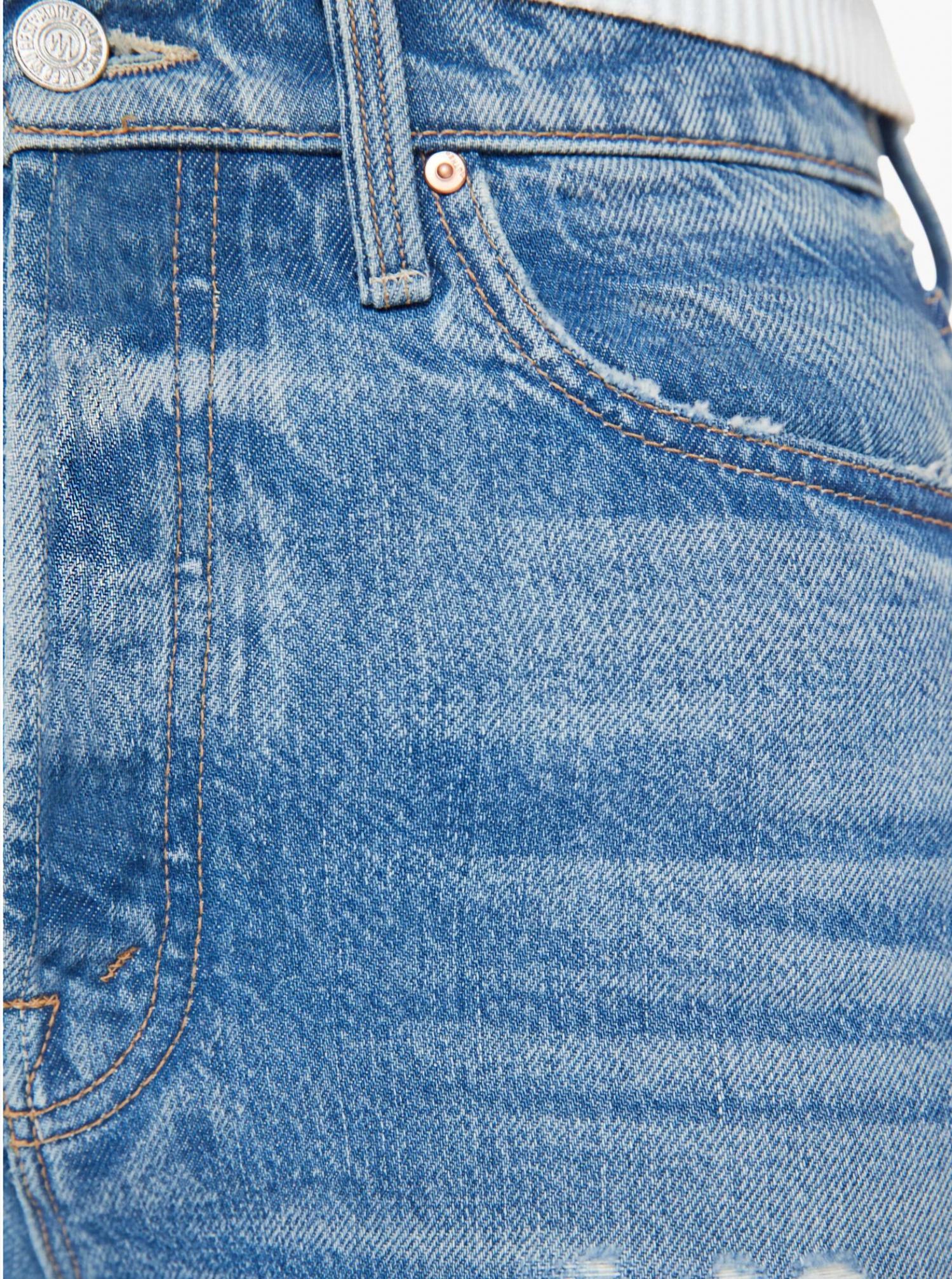 Apresentando a Calça Rambler Sneak de Cintura Alta da Mother, um jeans azul estiloso perfeito para qualquer evento noturno nesta primavera. Esta calça de cós alto inclui fecho de botão e apresenta um design de perna reta e larga com costura interna de 81 cm, confeccionada em jeans rígido OMG SUPERIOR com detalhes em azul médio, desbotados e desgastados. Orgulhosamente fabricada em Los Angeles, ela é projetada com funcionalidade e estilo em mente, incluindo bolsos para praticidade. Para cuidados, lave na máquina e seque na secadora para mantê-la com a melhor aparência possível.