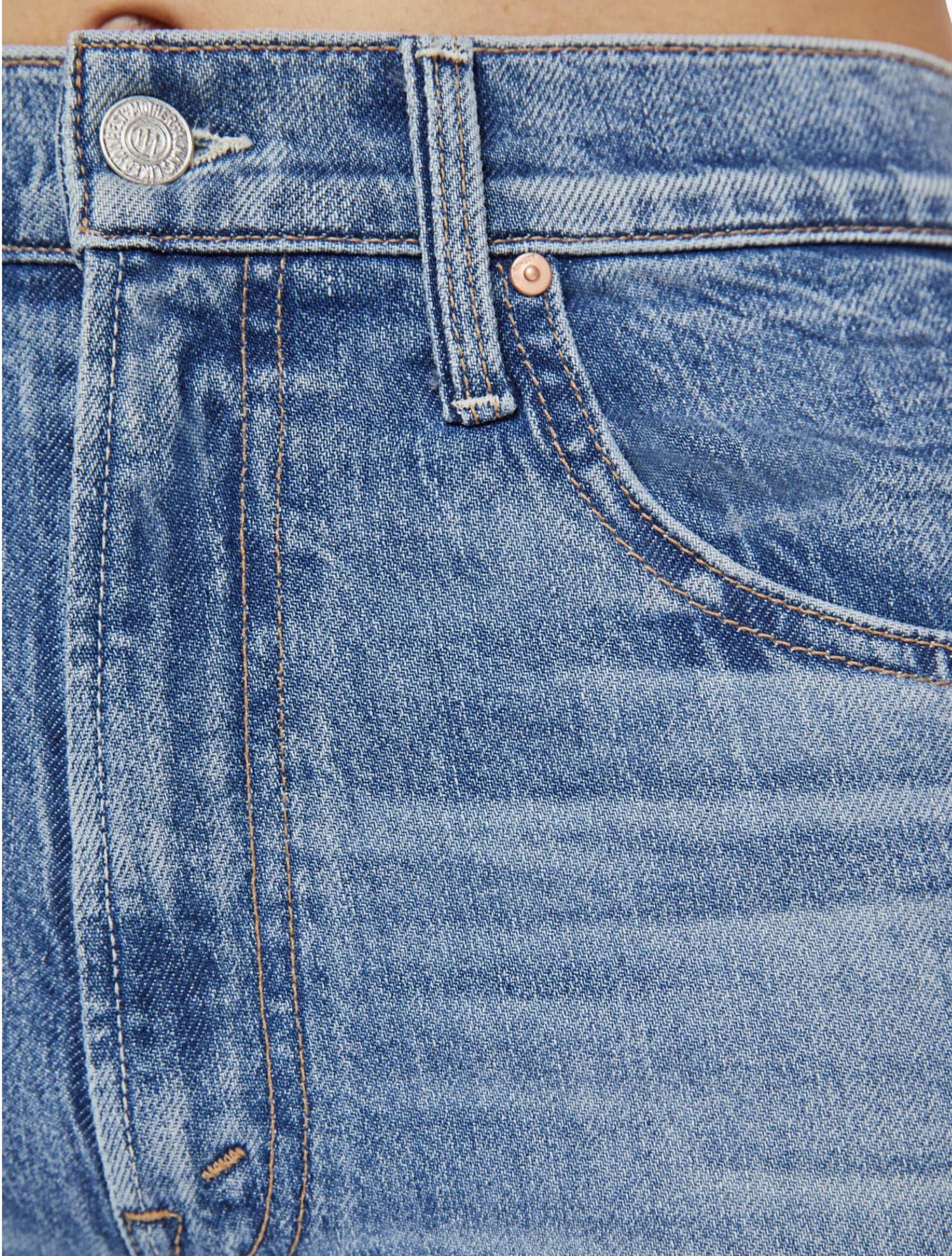 Uma silhueta elegante e surpreendentemente versátil. Apresentamos a Calça Jeans Scooter Ankle Flared Leg da Mother, confeccionada para um estilo chique e despojado em um tom azul-médio sólido. Esta calça jeans apresenta um corte relaxado com perna flare e cintura super alta, com cintura baixa nos quadris para um visual despojado. Confeccionada em jeans SUPERIOR semirrígido e com virilha levemente caída, ela apresenta uma costura interna na altura do tornozelo com franzido e desbotamento nos joelhos. Originária de Los Angeles, esta calça jeans tem fecho de botão e é fácil de cuidar, com instruções de lavagem à máquina e secagem em tambor.