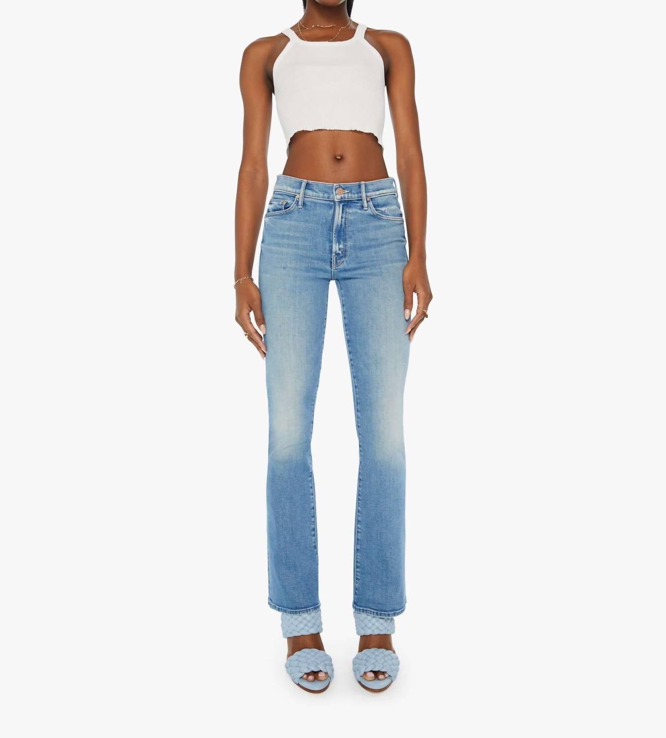 These must-have jeans are fit to perfection. Elevate your style with Mother The Outsider Sneak jeans, designed for those who venture beyond the ordinary. This women's straight-leg denim, colored in Flag Me Down, boasts a classic fit with a mid-rise and a flattering 32-inch inseam. Crafted from 90% Cotton, including 6% post-consumer recycled content, these jeans offer a light-blue wash with trendy whiskering and knee fading. Closure: Zip closure. Perfect for summer streetwear or a concert night out.