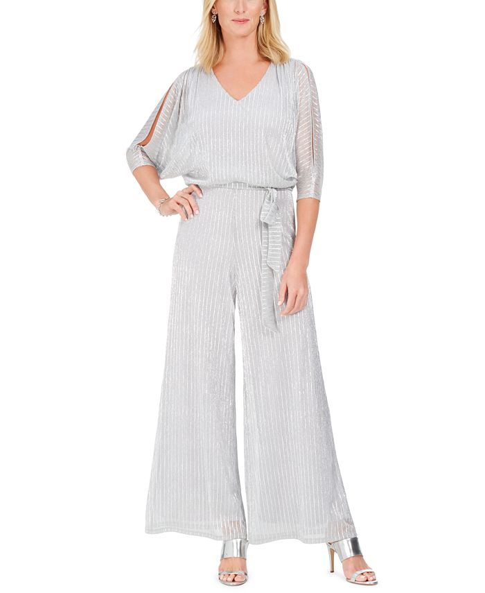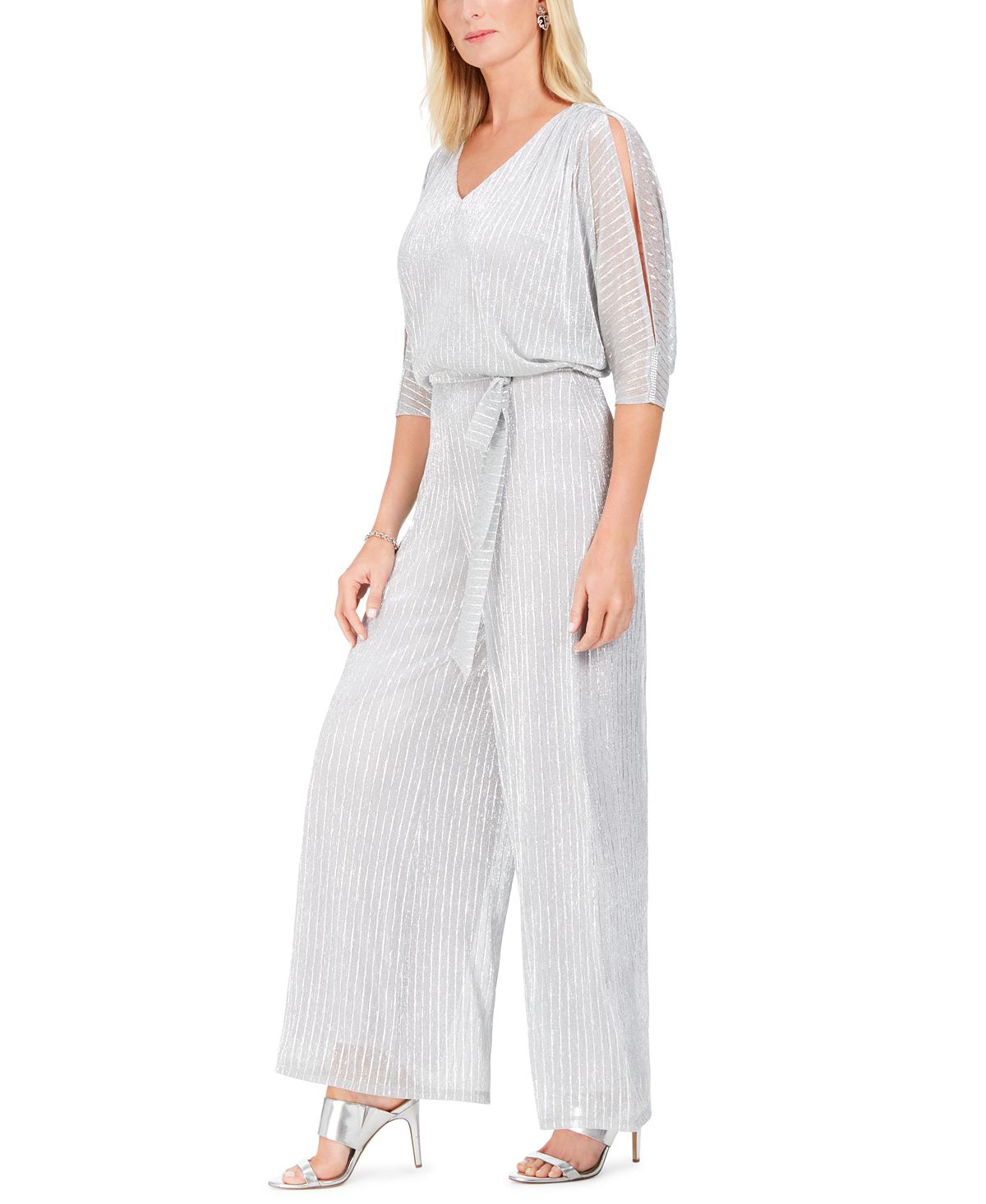 Blusa feminina MSK com manga 3/4, decote em V, perna larga, macacão formal, prata, tamanho 12