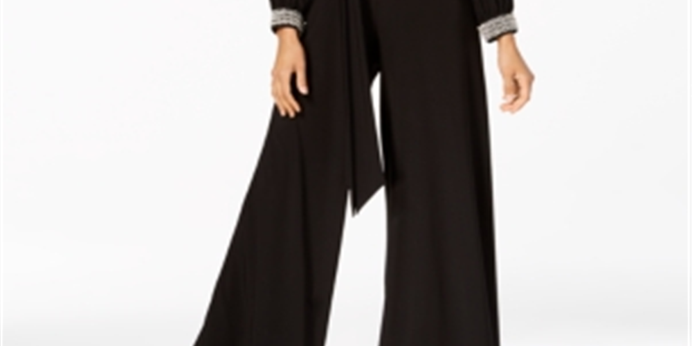 Macacão feminino MSK com decote em joia e pernas largas para festa, preto, tamanho extragrande