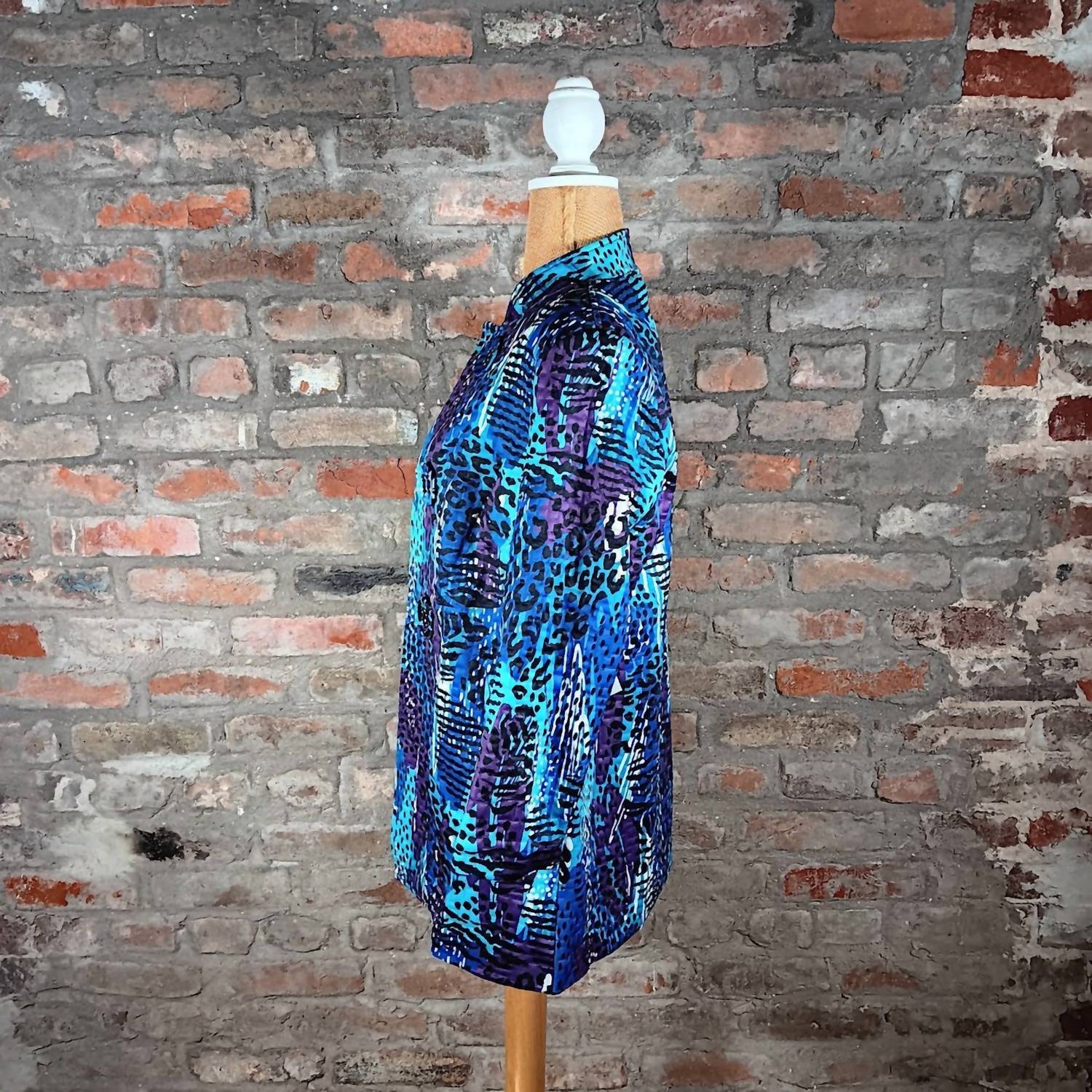 The coolest, most versatile utility jacket. Match it with your favorite pair of denim or throw it over any day dress. The Quarter Sleeve Stand Collar Quilted Jacket by Multiples is a stylish nod to 90s fashion, perfect for those spring adventures. Designed in a striking combination of teal, blue, and purple, this long-sleeve jacket offers warmth with its 100% polyester composition. Featuring a chic collar and large statement buttons, it combines both function and style effortlessly. Care instructions: Hand wash to maintain its vibrant colors and quilted texture.