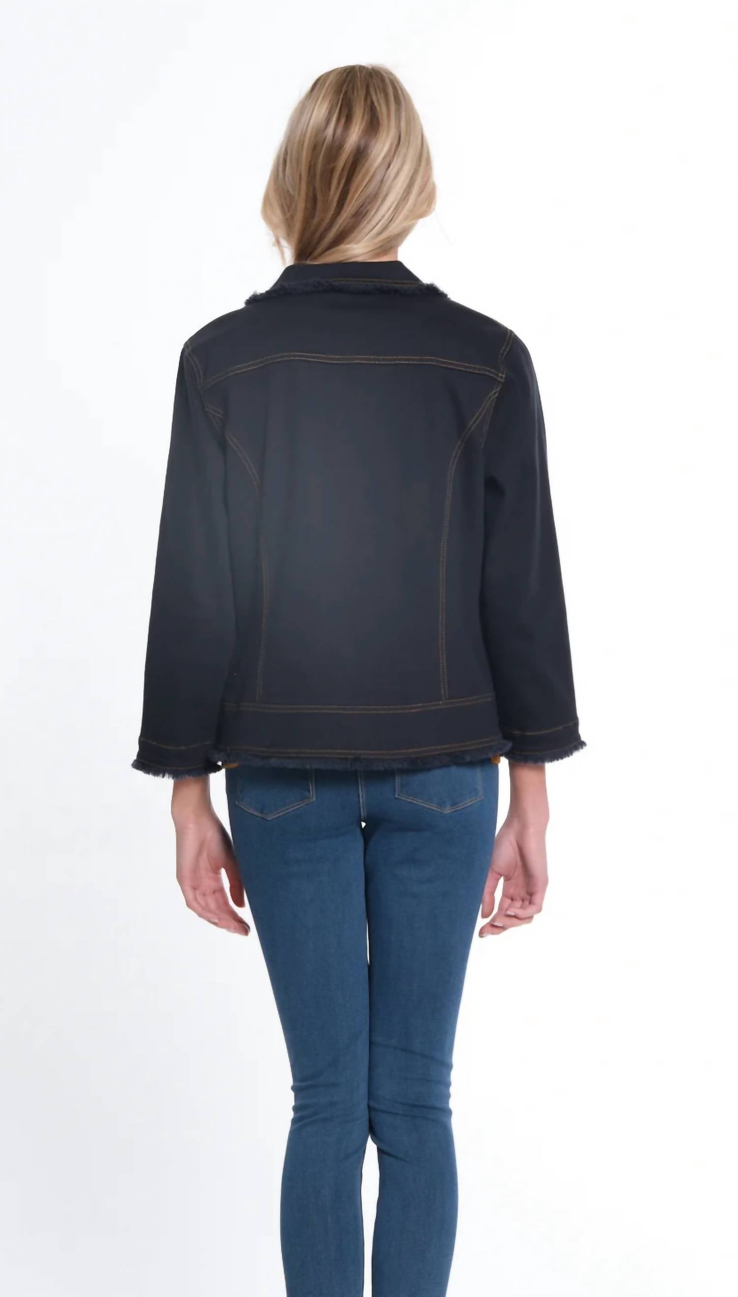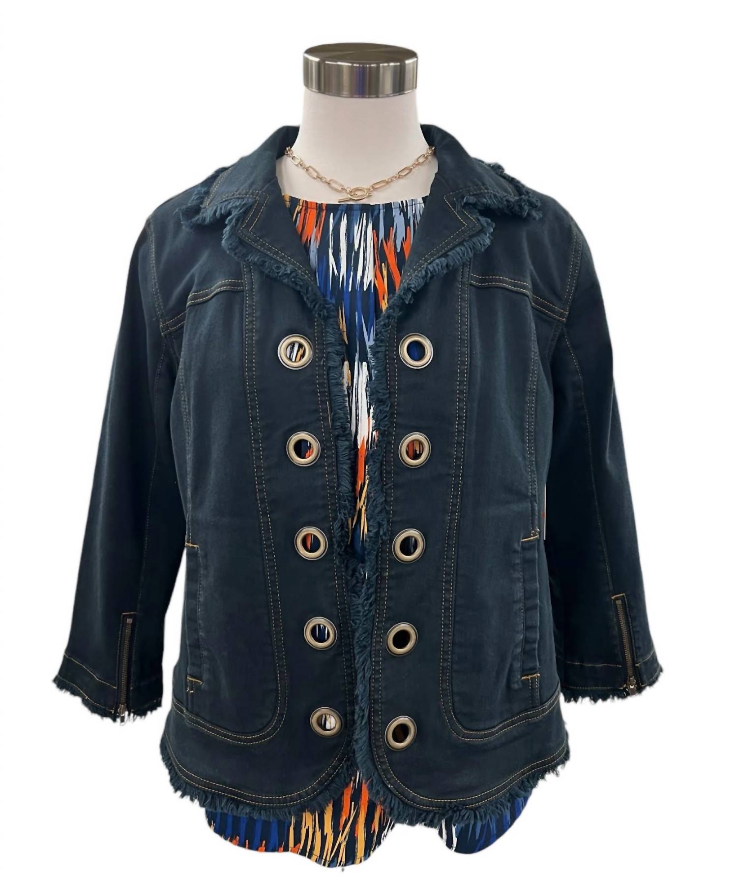 Apresentamos a Jaqueta Jeans com Franjas e Manga 3/4 com Punhos e Zíper da Multiples, uma adição chique a qualquer guarda-roupa em jeans escuro. Esta jaqueta jeans feminina é confeccionada em uma mistura de algodão, poliéster, rayon e elastano, garantindo conforto e estilo. Possui mangas três quartos, frente aberta e um elegante acabamento com franjas, além de detalhes em ilhós e um prático estilo de dois bolsos. Fechamento: Puxe. Cuidados: Lavar à máquina.