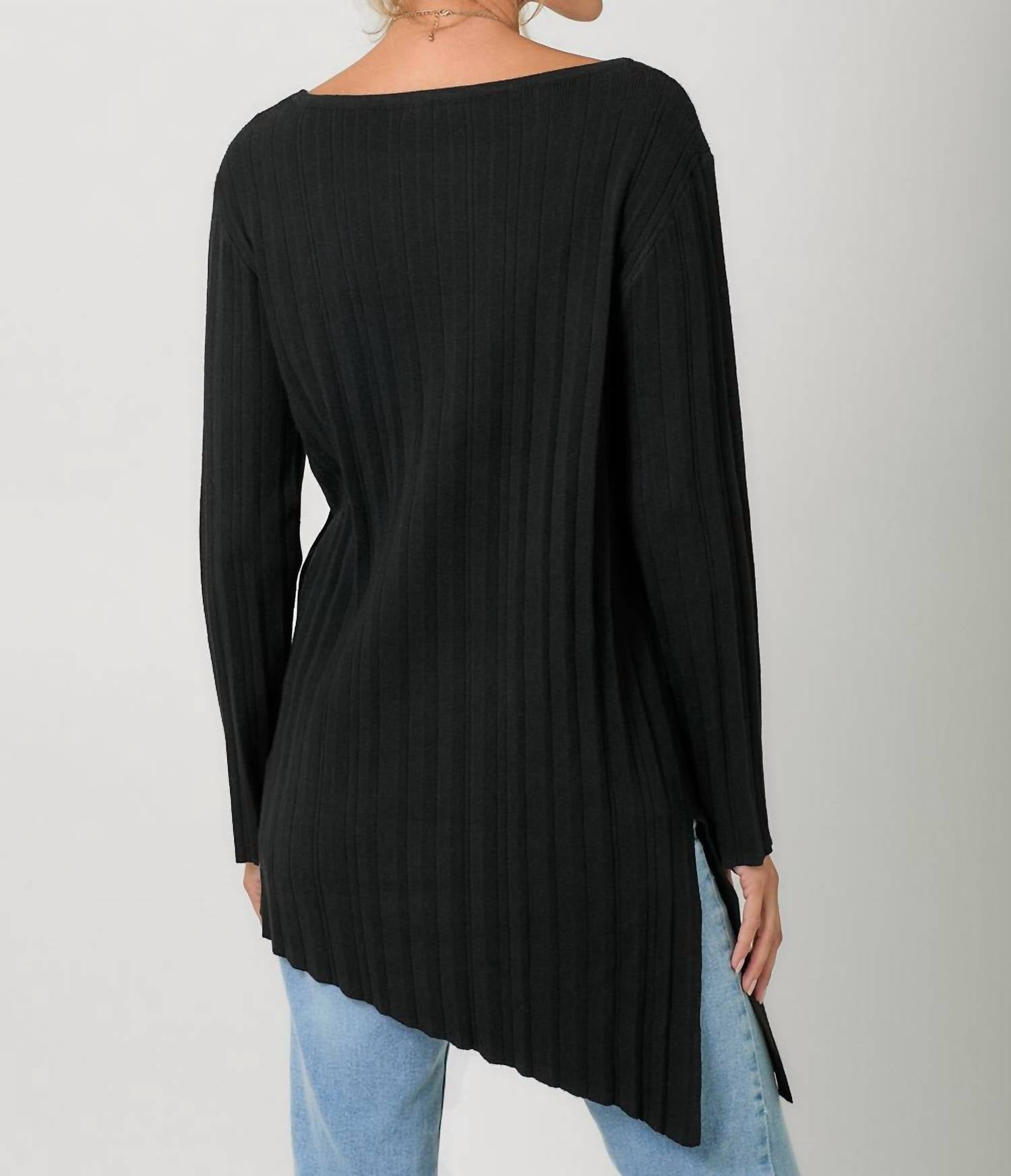 Mystree - Pleated Diagonal Cut Tunic Sweater