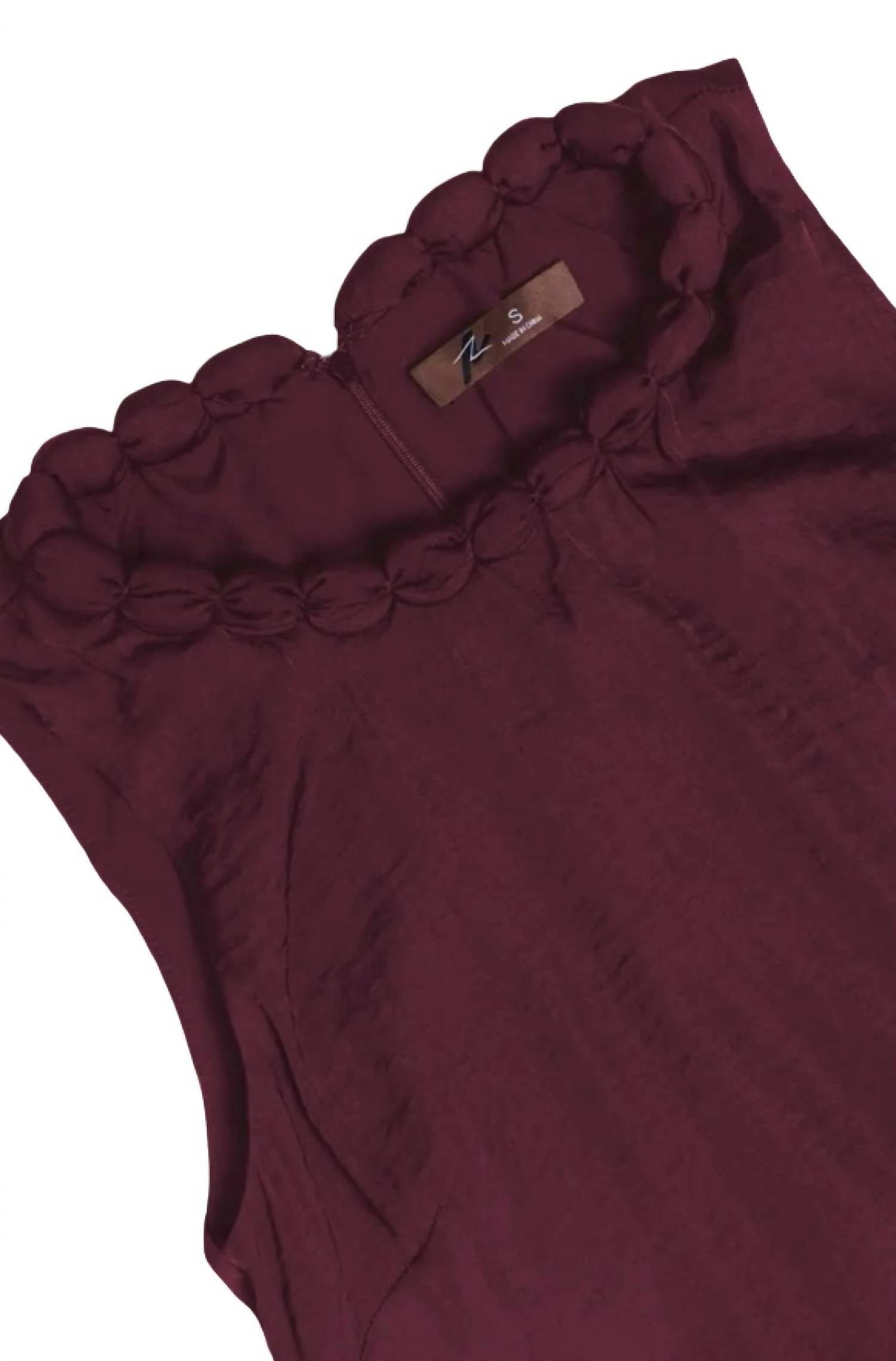 Elegant wine shade is your go-to for a chic Spring occasion. Featuring a sleeveless silhouette. Crafted from 100% polyester with a refined ball detail accent along the crewneck. Back zip closure and slit side pockets provide functional ease. Care is straightforward with hand washing recommended.