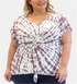 Camiseta feminina plus size Nanette Lepore com amarração frontal e tie-dye, branca, tamanho 1X