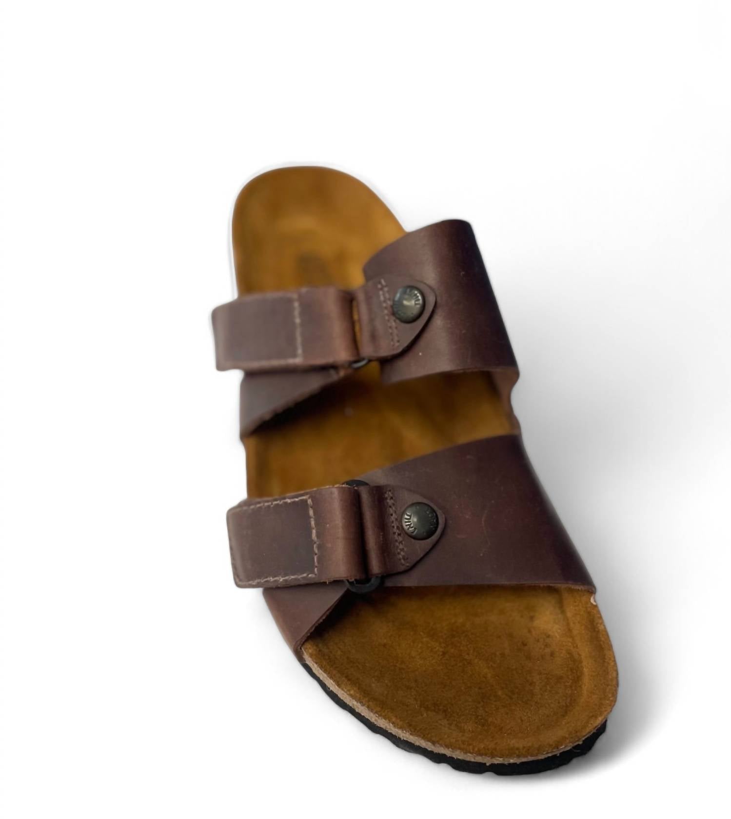 Possui tiras de couro duráveis e palmilha incrivelmente macia, forrada com camurça para maior conforto. Possui solado de poliuretano resistente, garantindo durabilidade e suporte.