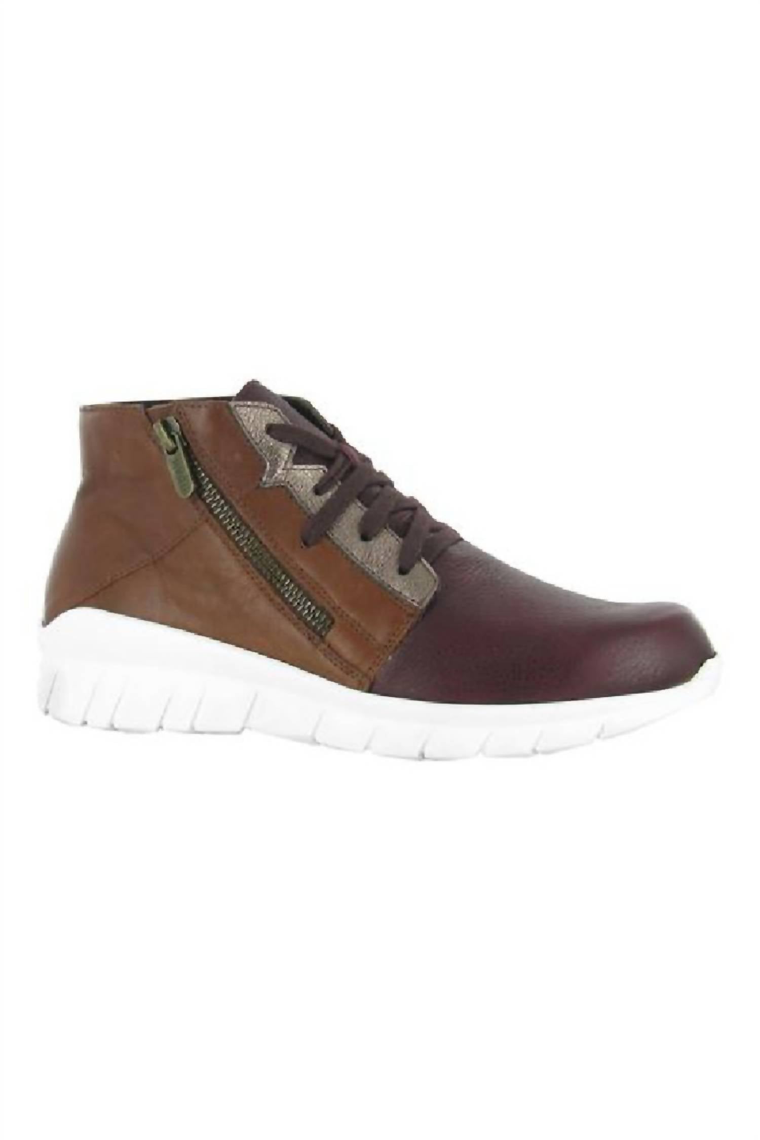 Quando moda e funcionalidade se unem perfeitamente. Botas Naot Polaris Femininas O Naot Polaris é o calçado esportivo perfeito para o dia a dia, com tons chamativos de couro e solado antiderrapante. O Polaris possui palmilha removível em cortiça e látex, proporcionando conforto o dia todo. Possui zíper externo para calçar e descalçar com facilidade, além de cadarços para um visual estiloso. Esta coleção utiliza uma estrutura Strobel costurada à mão, tornando-a resistente e extremamente flexível.