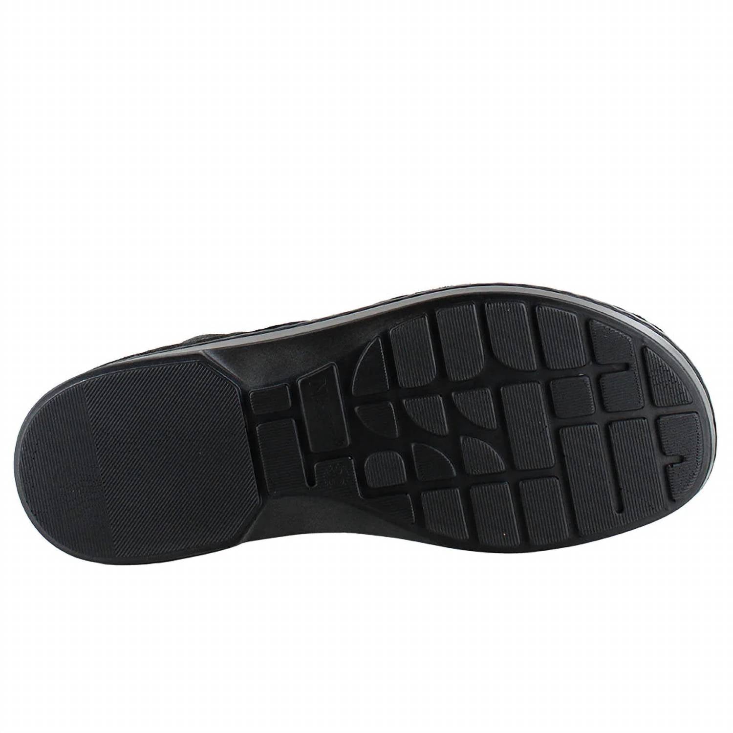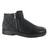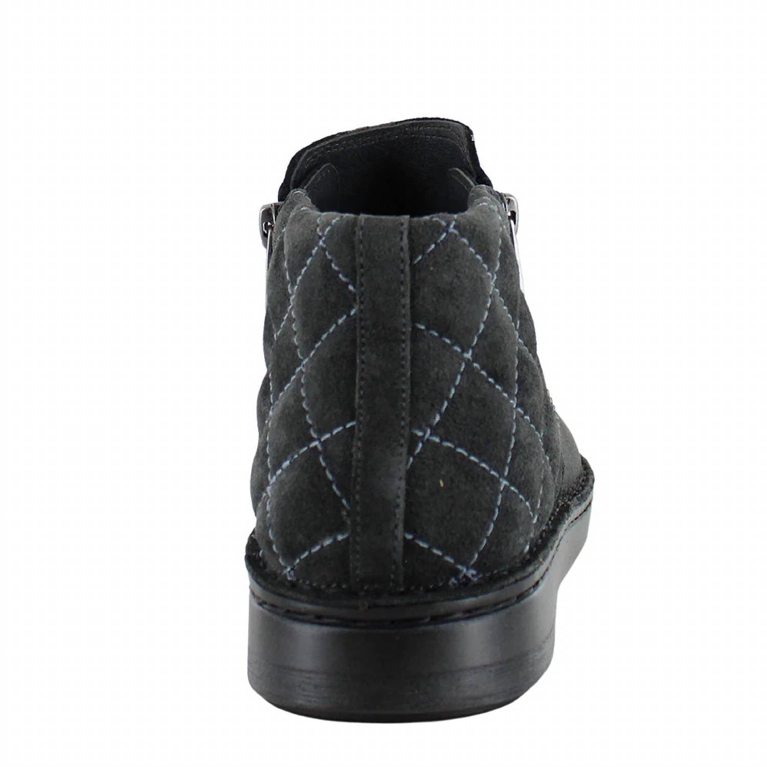 Step into style crafted from a luxurious combination of soft black leather and midnight suede. Features an anatomic cork and latex footbed. With quilted details and zipper accents. Round-toe booties have a 1.25-inch block heel. Slip-resistant, orthotic-friendly boots with your favorite Merino Wool socks for added warmth this fall-winter season.