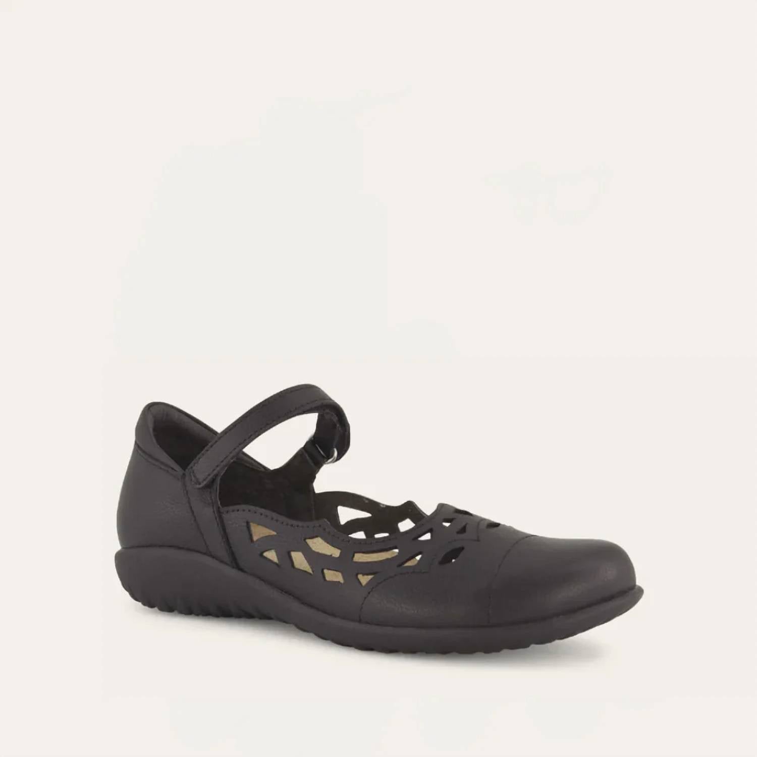 Apresentando um design recortado deslumbrante. Confeccionado em couro de qualidade. Oferece conforto supremo com fecho prático em velcro e salto plataforma de 2,5 cm. O design de largura média inclui solado de poliuretano antiderrapante e palmilha Koru removível, tornando-o adequado para órteses. Reconhecido pela APMA por promover a saúde dos pés.