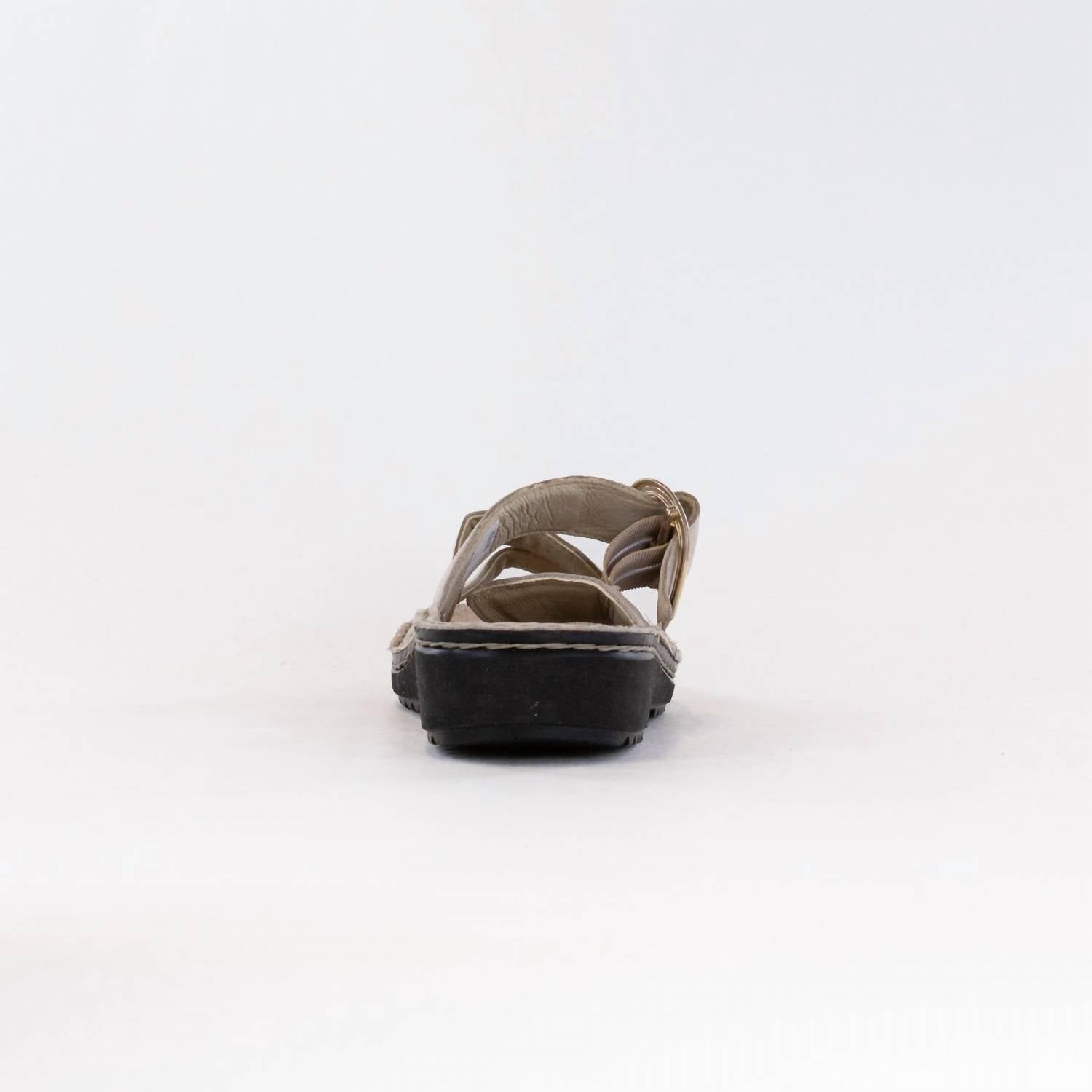 Discover the Women's Frey Slip-On Sandal by NAOT, a chic vacation essential in elegant ivory. Featuring a minimalist design with a buckle accent, this sandal offers an anatomic cork and latex footbed wrapped in cozy suede for personalized comfort. It is crafted with a 1.25" lightweight polyurethane sole, boasting a sturdy yet sleek finish. Perfect for summer, this orthotic-friendly sandal supports good foot health, making it a trendsetter in both style and function.