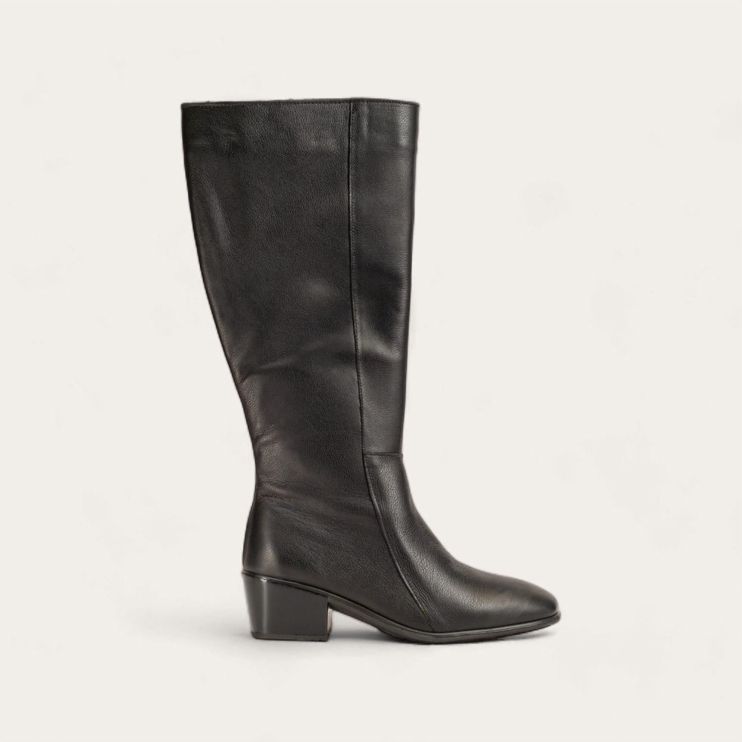 Step into elegance with the NAOT Women's Gift Calf Boot, a perfect choice for holiday parties. Crafted in soft black leather, this preppy heeled boot features a stylish 1.8" block heel for a comfortable and chic look. The round toe design adds a classic touch, making it ideal for spring occasions. Elevate your wardrobe with these versatile heeled boots, designed for the sophisticated adult woman.