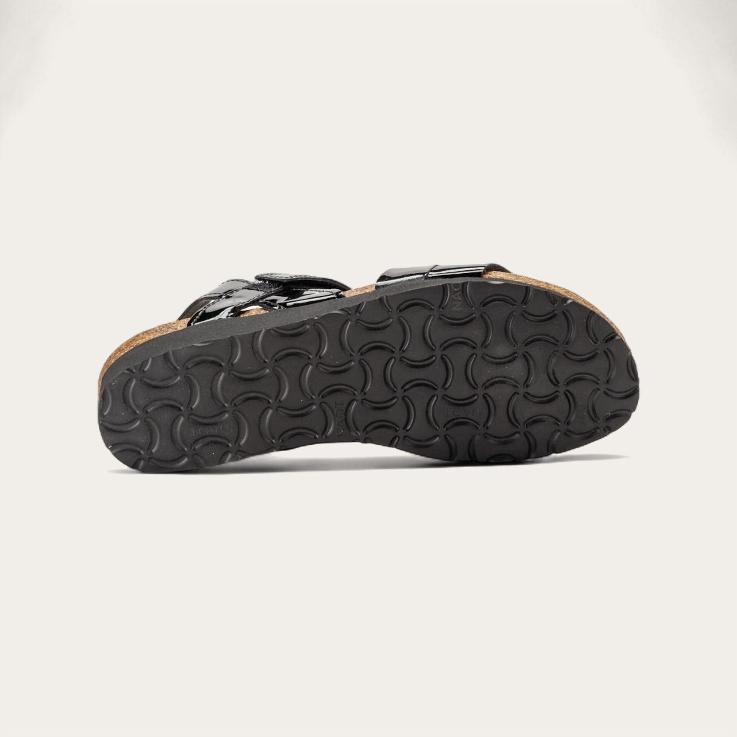 This sandal will take you from brunch to dinner and everything in between. Step into elegance with the Women's Kayla Sandal by NAOT, a minimalist yet chic choice for your summer wardrobe. Crafted from glossy black patent leather, this sandal features a flat heel measuring 0.75 inches, ensuring both style and comfort. Designed with a narrow fit and open toe, it’s perfect for a holiday party or any warm-weather occasion. These sandals are a great addition to your footwear collection this season.