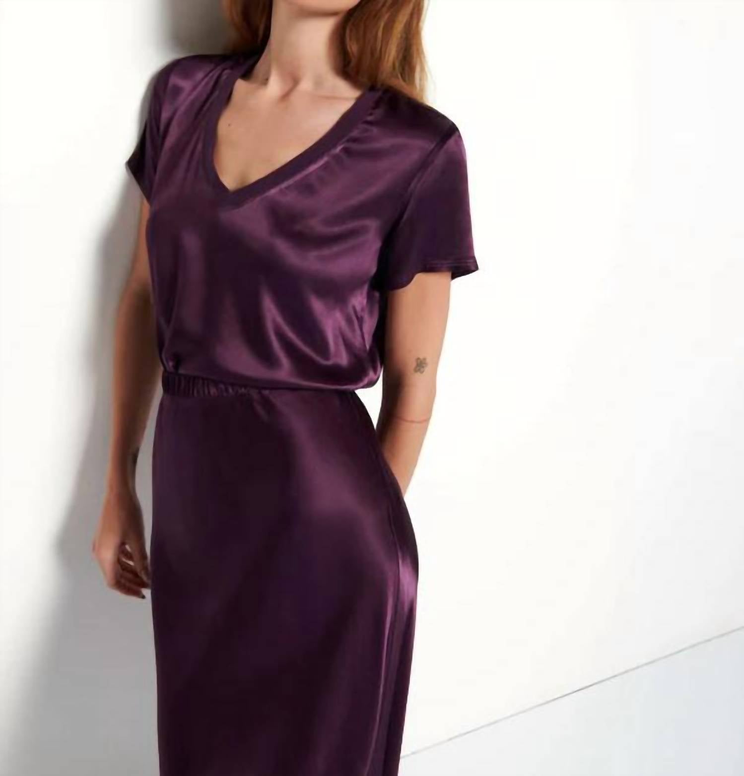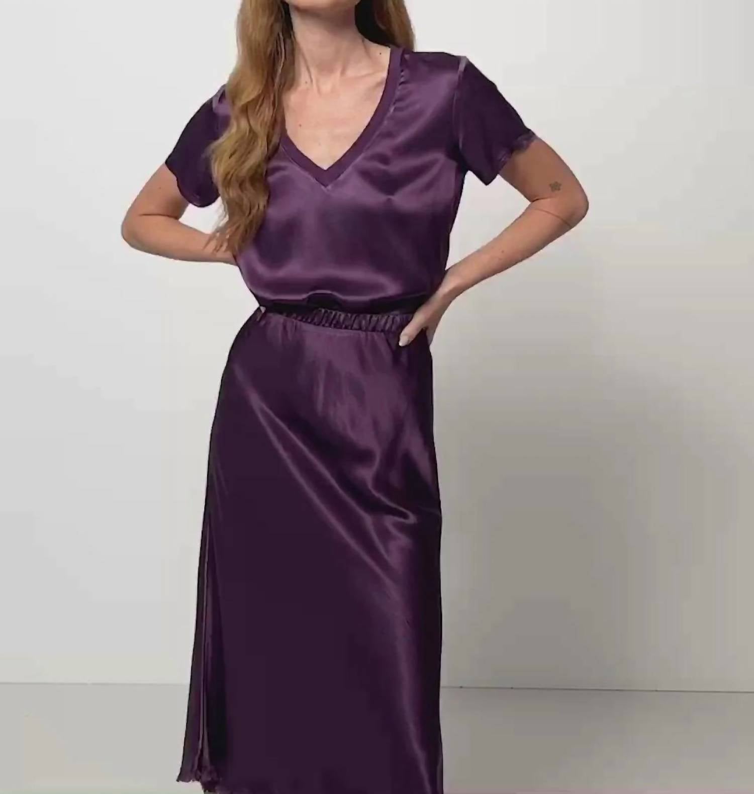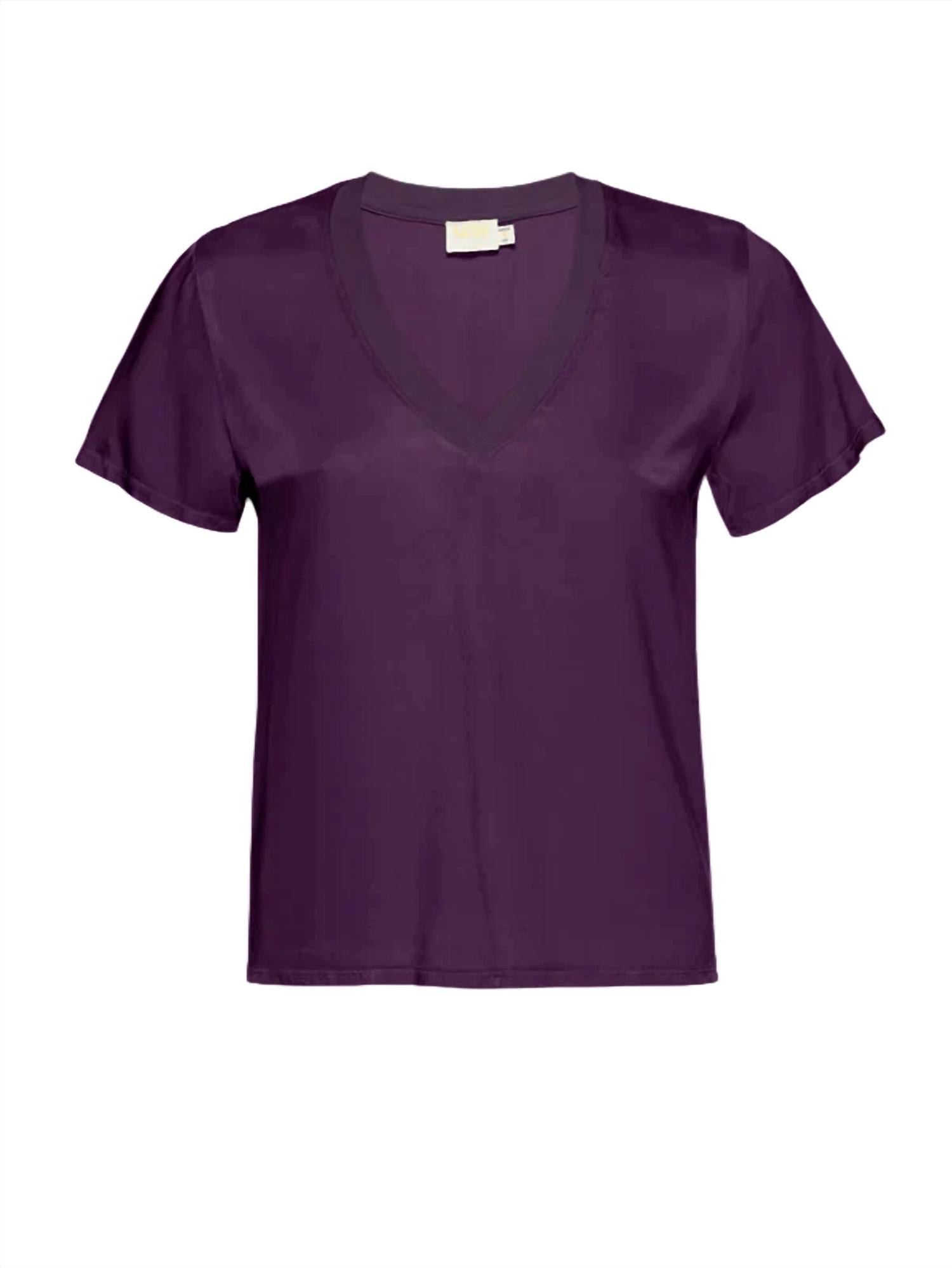 Esta camiseta clássica de manga curta será sua peça essencial nesta temporada e nas próximas. Conheça a camiseta com decote em V June da Nation LTD, um item essencial na cor Smoke para um look de verão chique e descontraído. Esta camiseta de manga curta tem um decote canelado descontraído e é adequada para sutiã, para maior conforto. Feita 100% rayon, oferece um toque stonewashed de peso médio que imita a seda, perfeita para um guarda-roupa minimalista e estiloso. O fecho é fácil de vestir e as instruções de cuidado incluem lavagem à mão para manter sua qualidade.