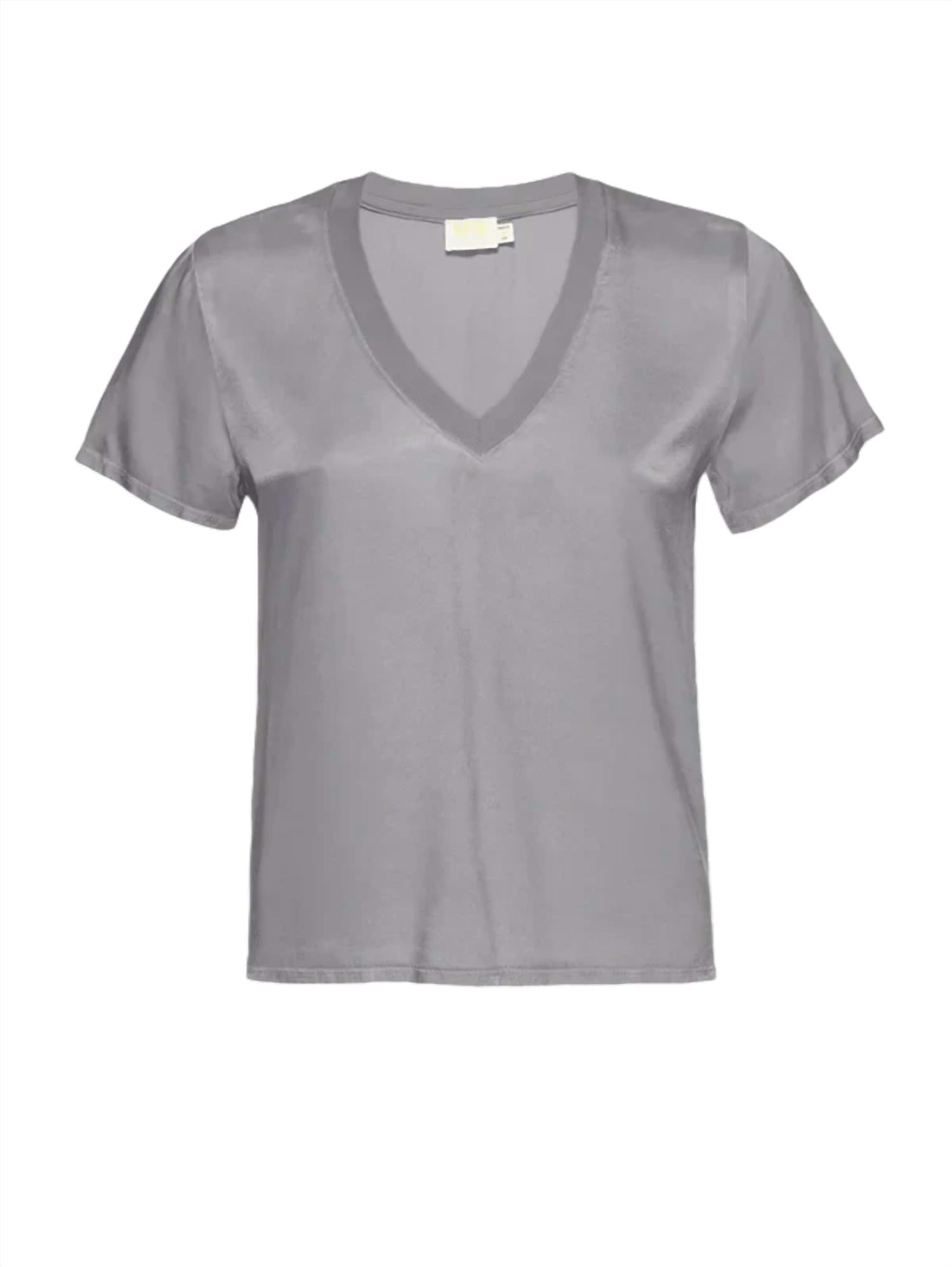 Esta camiseta clássica de manga curta será sua peça essencial nesta temporada e nas próximas. Conheça a camiseta com decote em V June da Nation LTD, um item essencial na cor Smoke para um look de verão chique e descontraído. Esta camiseta de manga curta tem um decote canelado descontraído e é adequada para sutiã, para maior conforto. Feita 100% rayon, oferece um toque stonewashed de peso médio que imita a seda, perfeita para um guarda-roupa minimalista e estiloso. O fecho é fácil de vestir e as instruções de cuidado incluem lavagem à mão para manter sua qualidade.