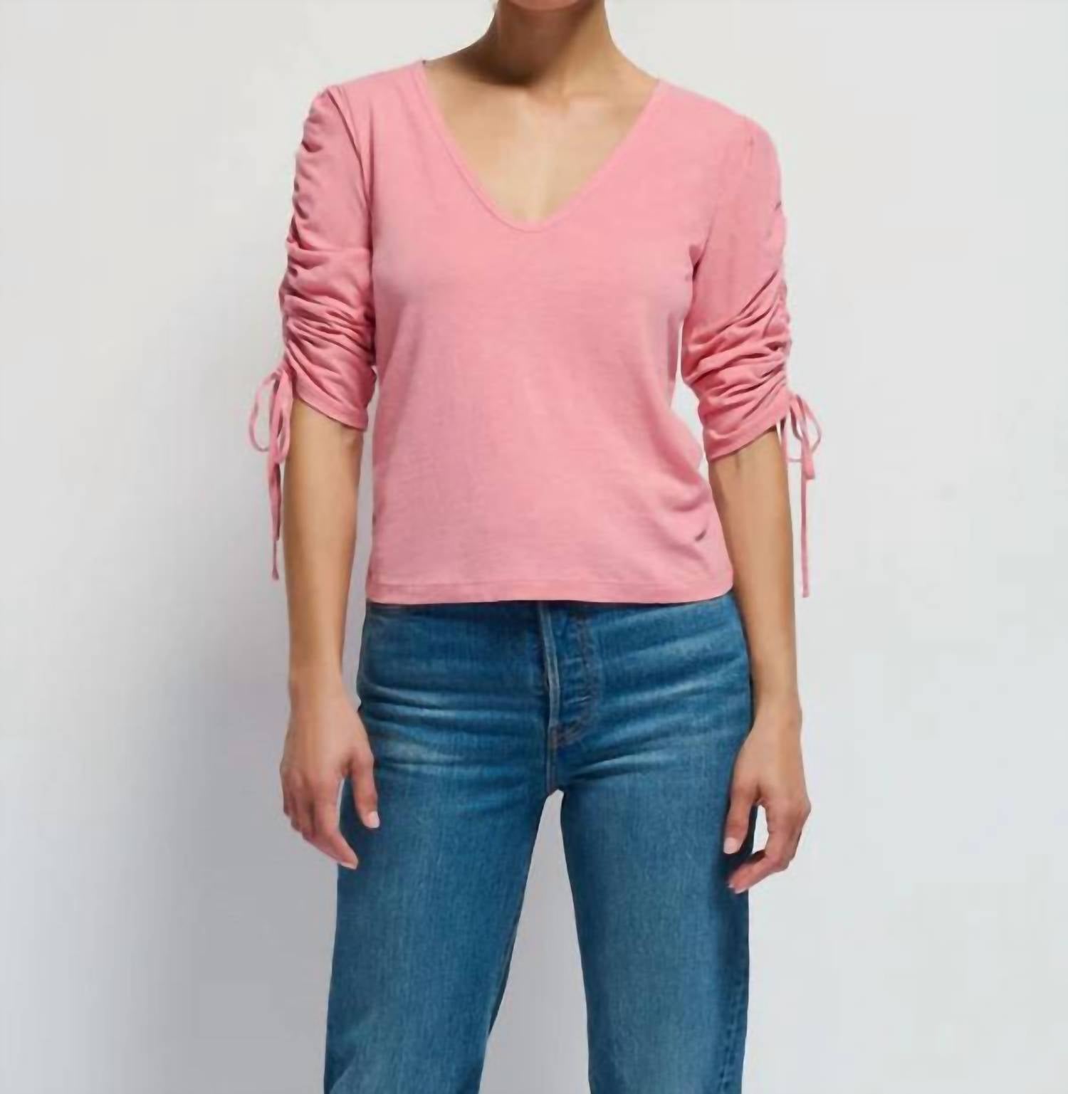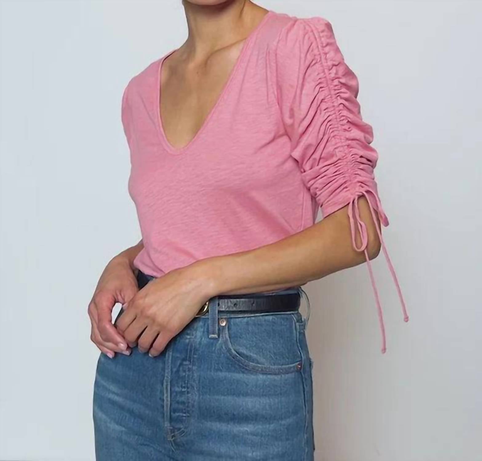 Eleve seu estilo com a Prima Tee da Nation LTD, uma blusa lilás lisa, confeccionada para uma tendência minimalista de verão. Com mangas curtas, esta blusa 100% algodão Pima promete maciez semelhante à sua adorada camiseta vintage. Com fecho pull-on, mangas franzidas com amarração e ombreiras discretas, ela é perfeita para adicionar romantismo a qualquer look. Lavável à máquina, recomenda-se secar ao ar livre para manter o formato e o toque.
