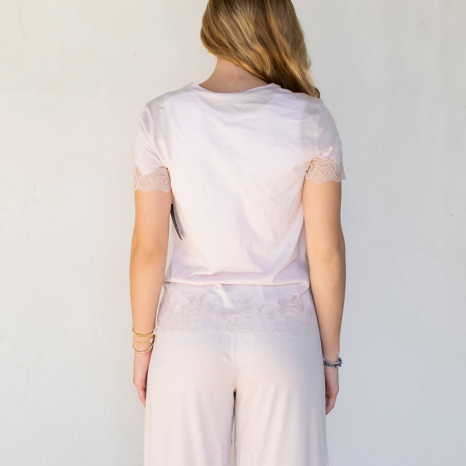 A match made in heaven. This two-piece set is so cute, you'll wish you could wear it out of the house! Did we mention how comfortable it is, too? You may want two sets! Unveil elegance and refined comfort with the Fleur Pajamas Set by Natori in the charming Pale Peony hue. Featuring short sleeves and a feminine V-neckline, this textured loungewear set offers a minimalist yet sophisticated silhouette. Crafted for women who appreciate a blend of style and ease, it’s perfect for restful nights or relaxing days. Care: Hand wash to maintain its understated luxury and design integrity.