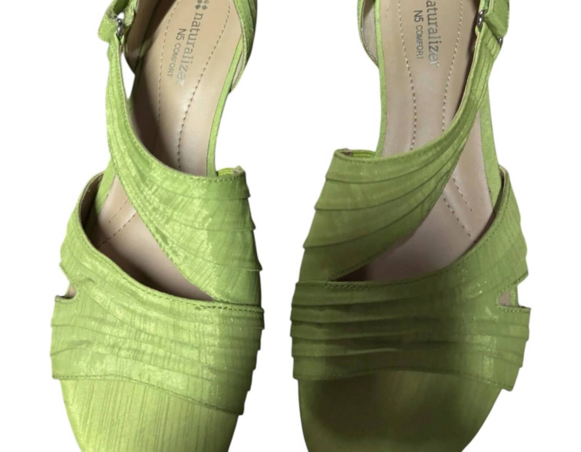 Step into summer, featuring a bright lime green hue that exudes freshness and vibrancy. Designed for ultimate comfort, offer a flat heel with a slight wedge and an adjustable strap with a buckle closure for a secure fit. With a visually striking pleated texture on the vamp, embody the boho chic trend, perfect for casual outings or vacation wear. Embrace the open-toe design, ideal for showing off your pedicure under the sun.